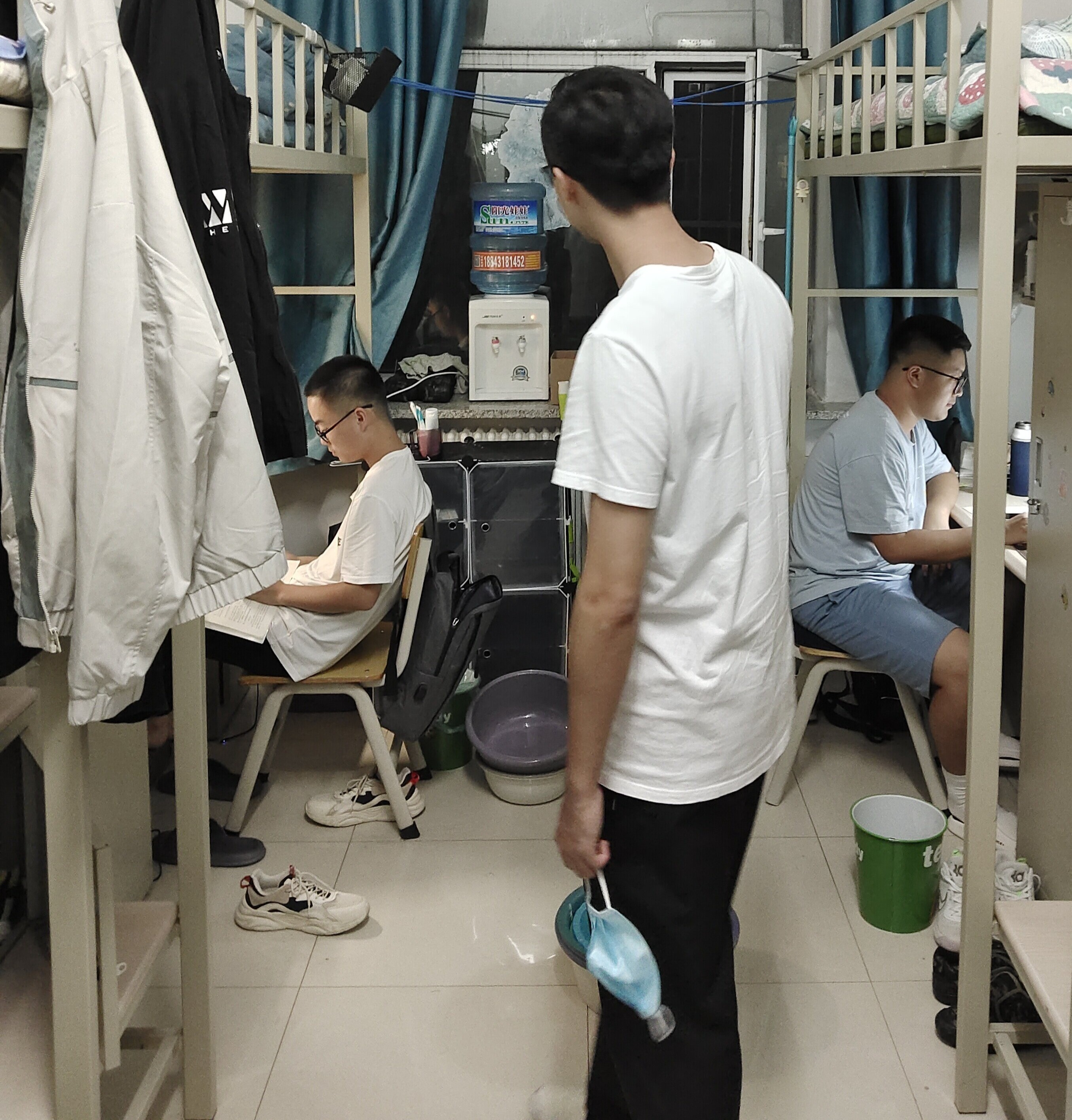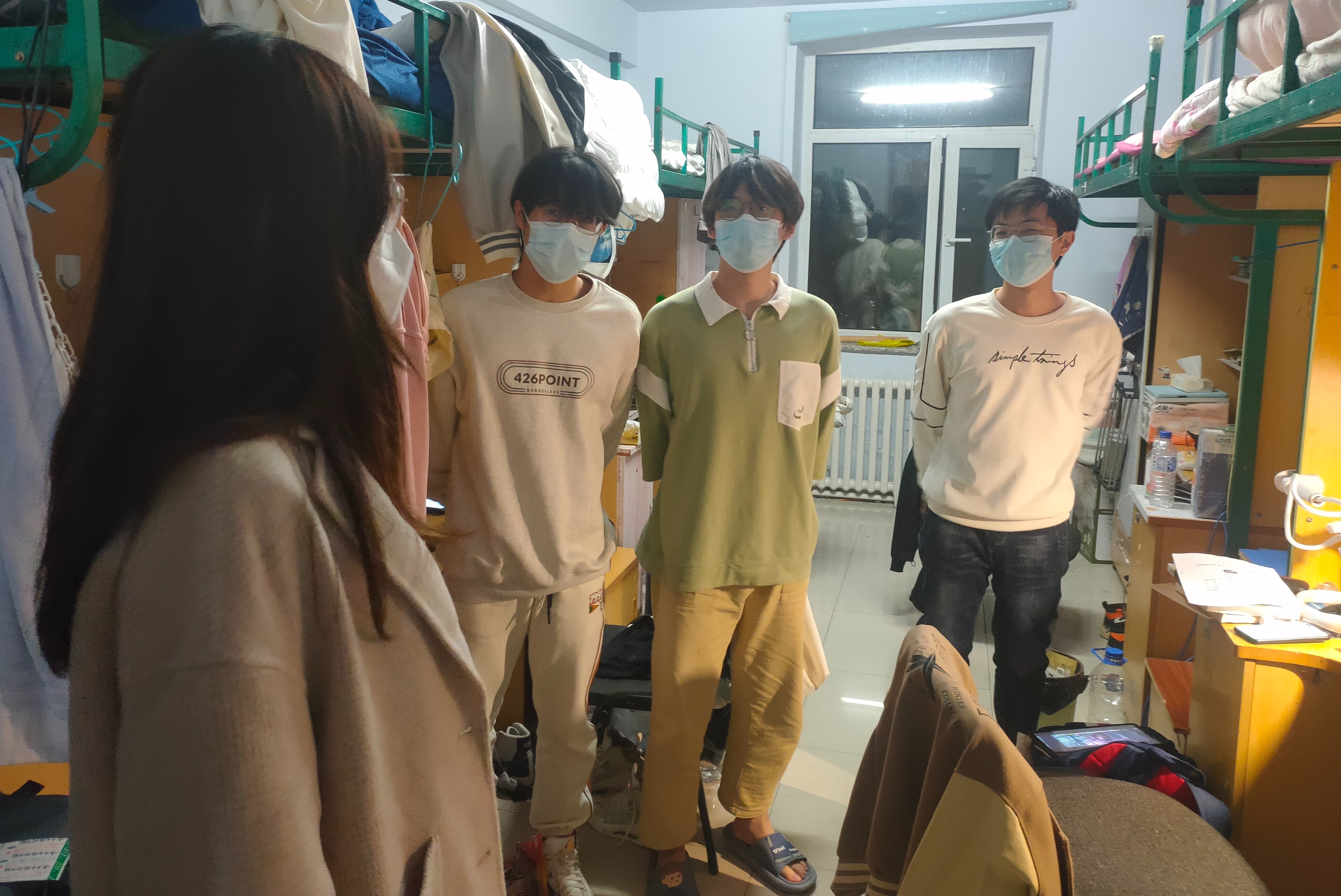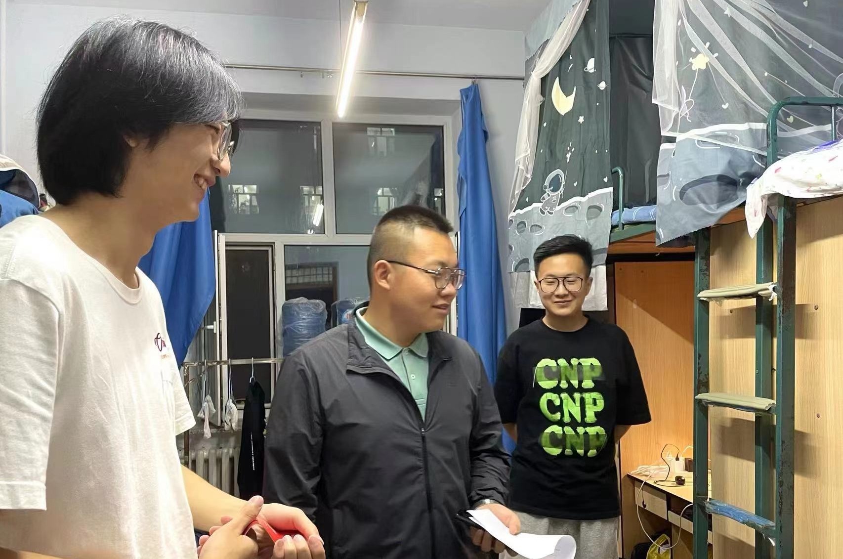 走访过程中,三位辅导员老师对寝室卫生和用电安全做了仔细检查,提醒同学们杜绝使用违规电器、保证寝室用电安全,同时强调在常态化防控期间,各位同学要做好个人防护,出入寝室、教学楼戴好口罩,定期对宿舍进行消毒通风。孙鹏博老师和包健伦老师在寝室中与学生进行亲切交谈,询问同学们在生活中遇到的问题,了解学习方面存在的困难,并向大家传达学院领导和老师对同学们的关心和鼓励。在毕业生宿舍,马姗姗老师详细询问了考研学生复习应考的进度和状态,勉励考研学生在冲刺阶段要树立充足信心,保持良好心态,劳逸结合,以积极的态度迎接考试,取得满意成绩。