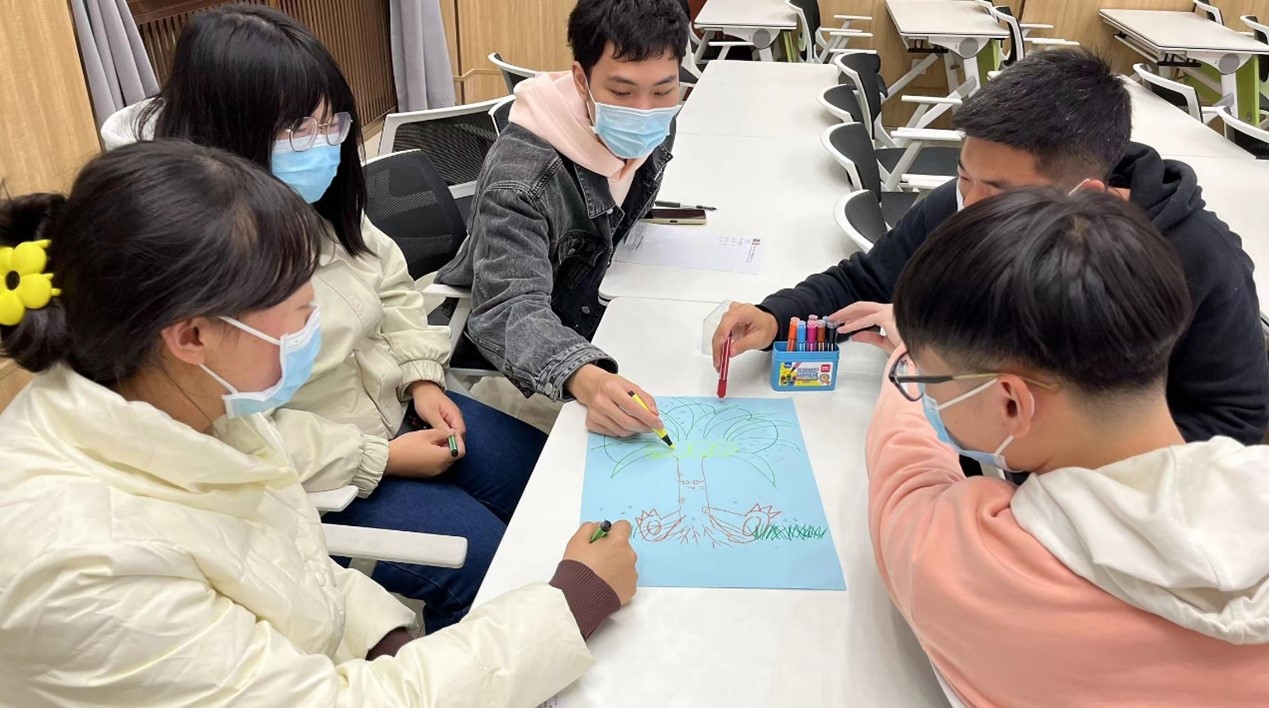 为了使2022级新生入学研究生在新环境中建立起心理支持系统,增强团体凝聚力,丰富研究生课余生活,促进班级成员的相识,建立互信。本次活动主要是组织学生开展团体心理辅导的实践体验。在实践体验中,热身阶段的 “一分钟鼓掌”、“我知道”的游戏环节使同学们消除了戒备感;“集体登陆”、“人体字母”等轻松的游戏环节舒缓了同学们的压力,愉悦身心同时促进了同学之间的相识和交流;在“快乐传递”、“信心启迪”等环节,增强了大家发现优点、相互欣赏的能力;最后的团体树绘制让大家体会到团队之间的协调与配合,切身感受到了团体合作的必要性以及人际关系间双向交流的良性影响,提升了班级凝聚力。