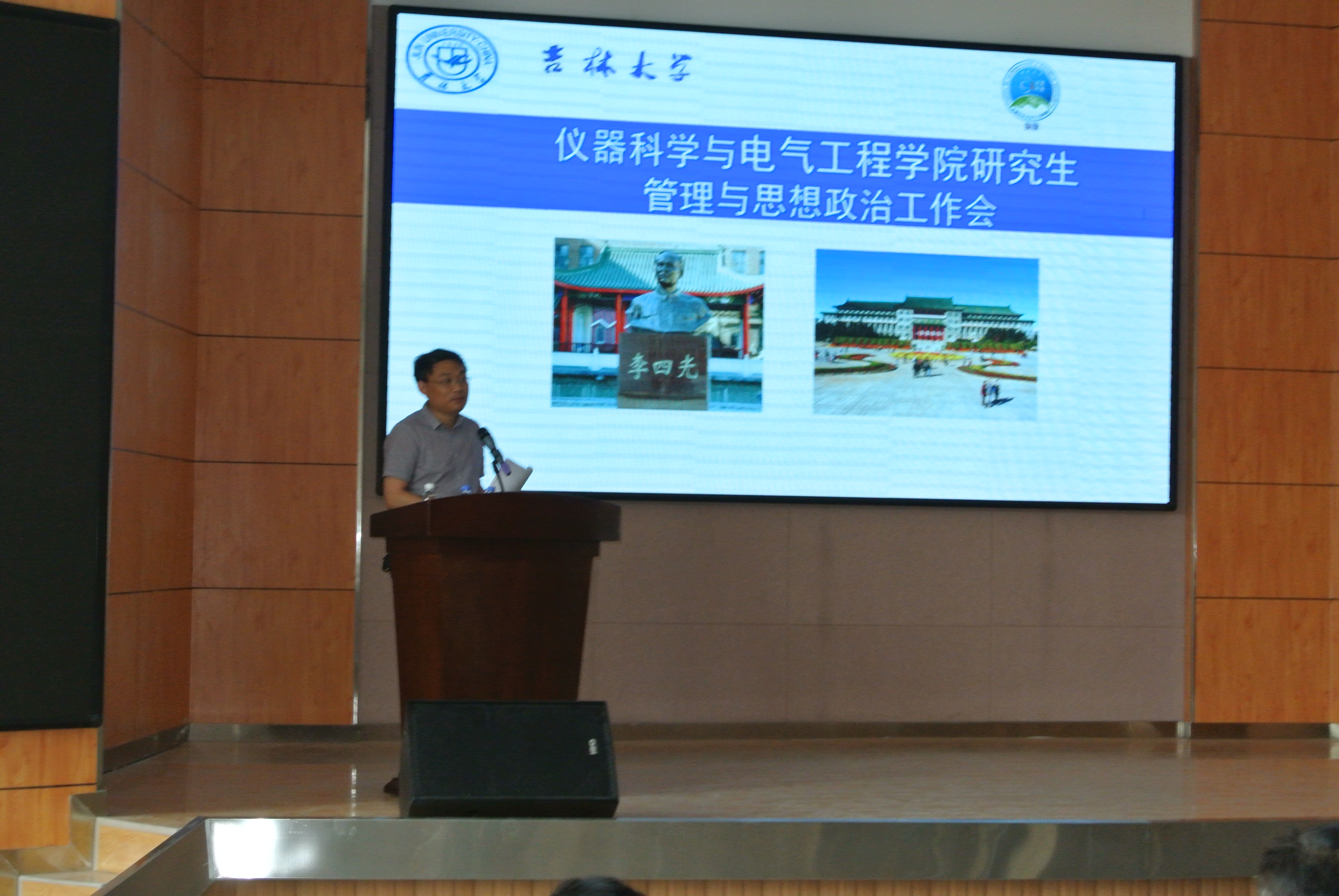 在图书馆四楼报告召开研究生管理与思想政治工作会议,全体研究生导师和全体研究生参加了会议,会议由副院长王言章主持。