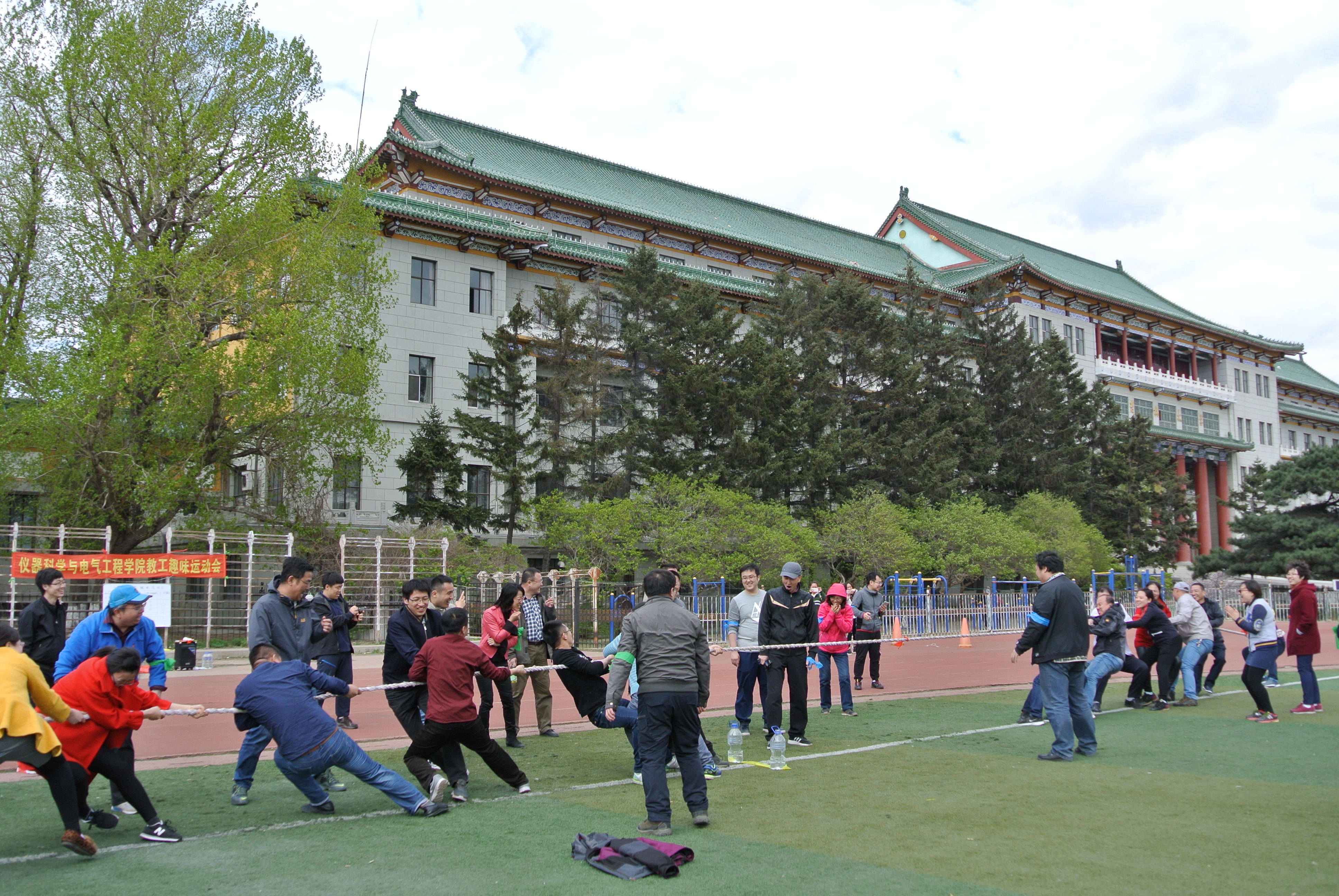 本届教职工趣味运动会比赛项目共有七项,分别是:迎面接力、5人6足、协同作战、穿针引线、争分夺秒、托球跑和拔河比赛,比赛场面热闹非凡,加油声、呐喊声、欢呼声响彻整个操场。最终,仪器工会小组获得团体第一名,行政与重点实验室联合工会小组荣获团体第二名,实验中心与工程中心联合工会小组、电气系工会小组获第三名。