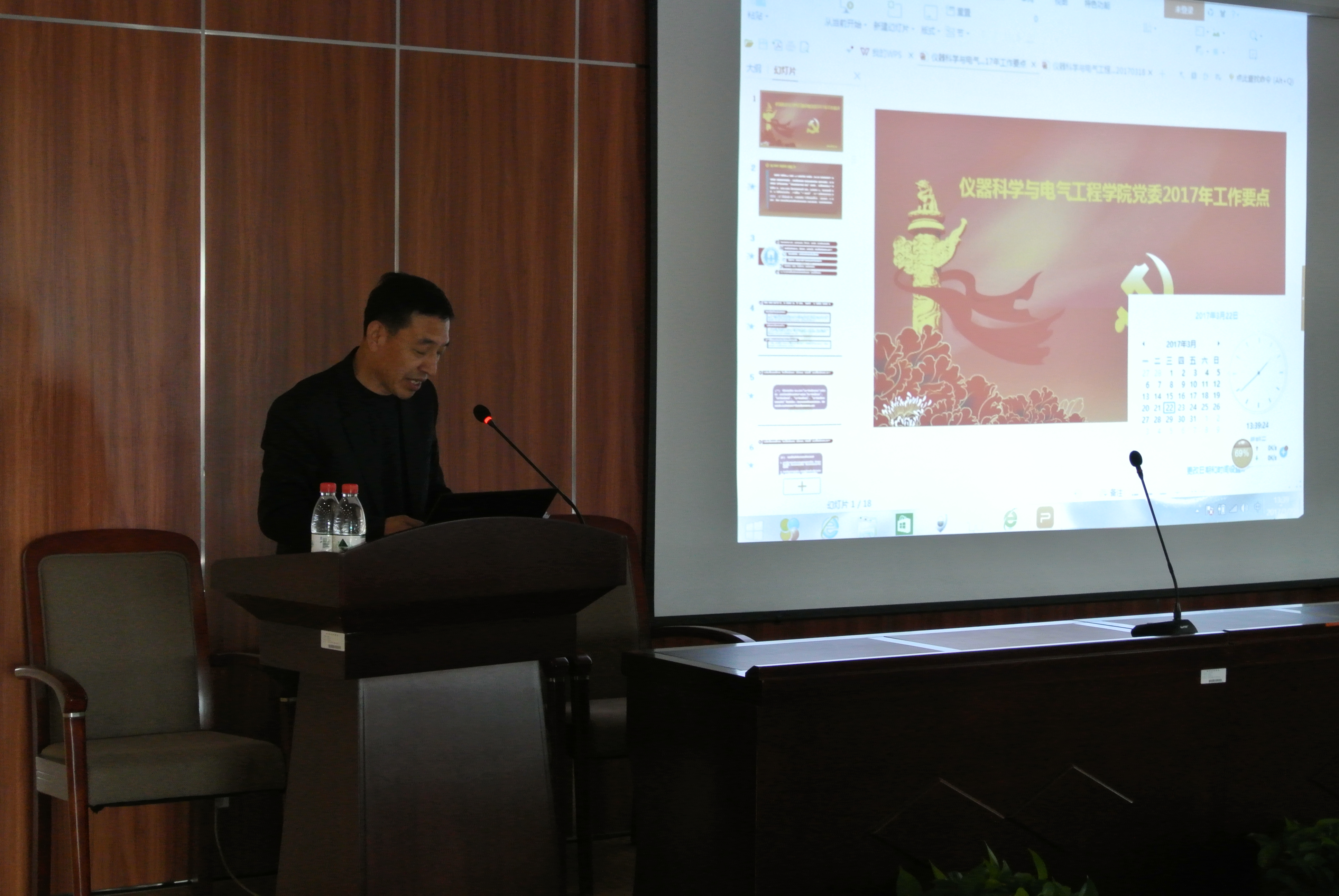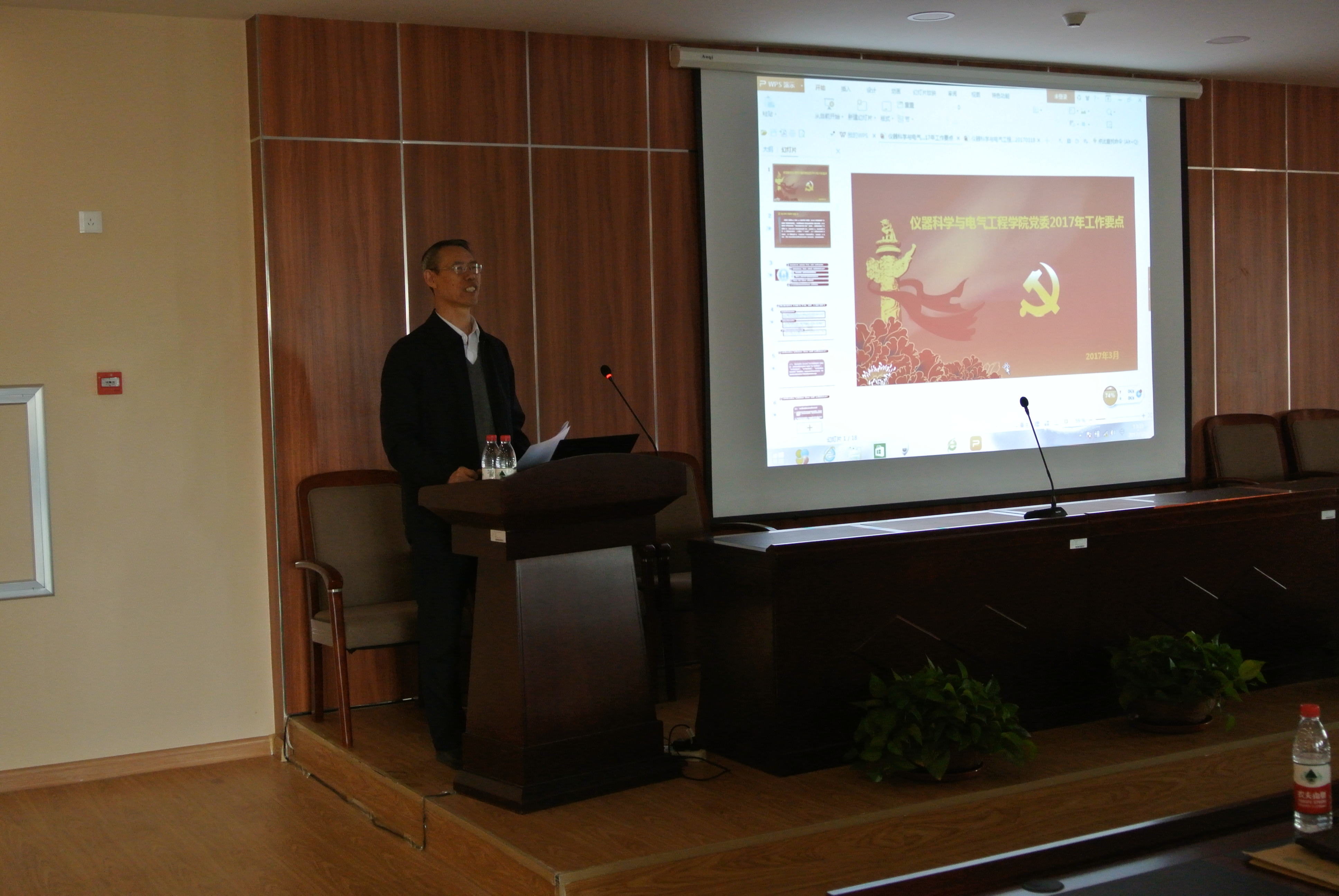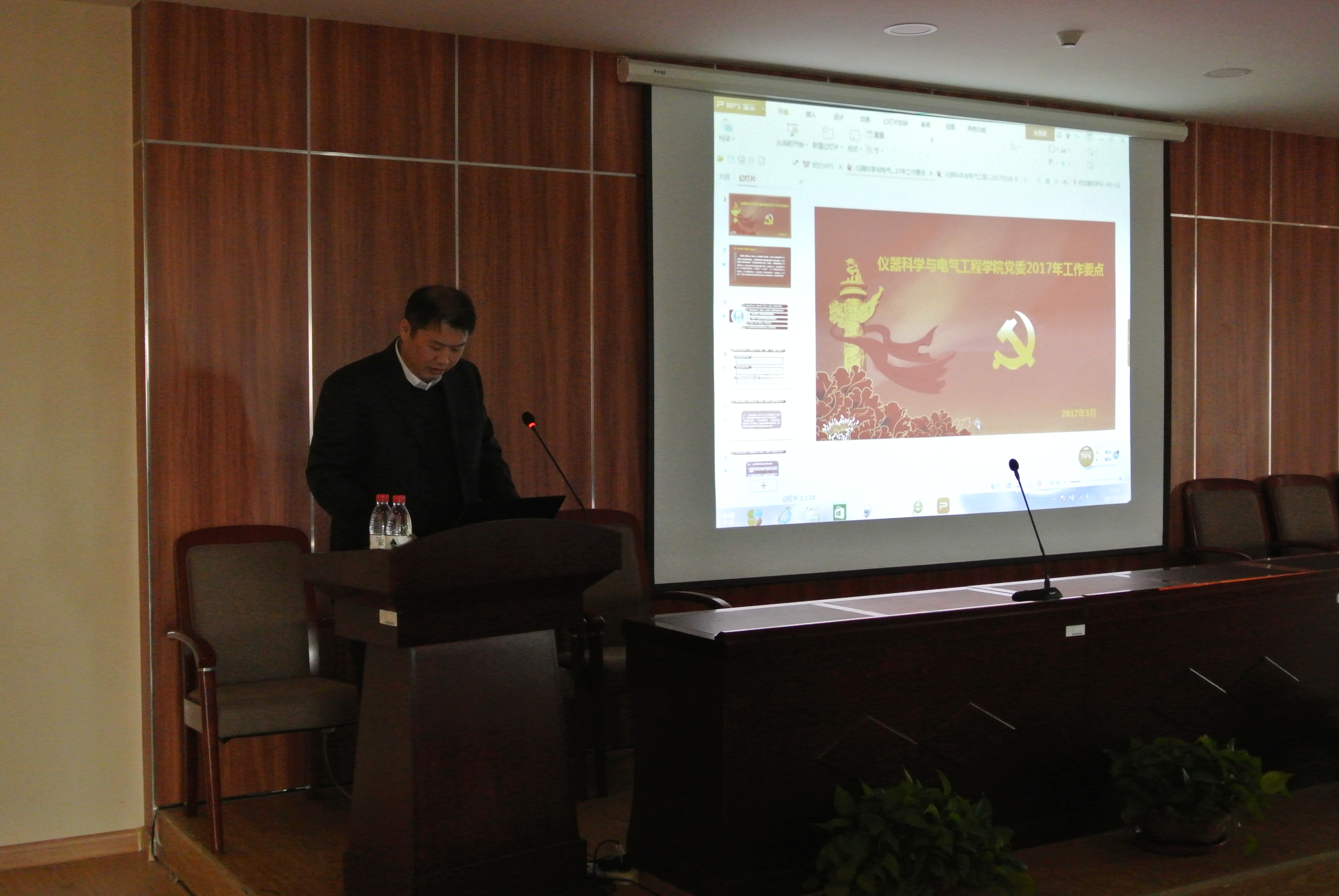 在国家工程中心三楼报告厅召开新学期全院教职工大会,传达学校有关文件精神,总结2016年工作,布置2017年工作,学院党委副书记兼纪委书记邱增凯主持会议。