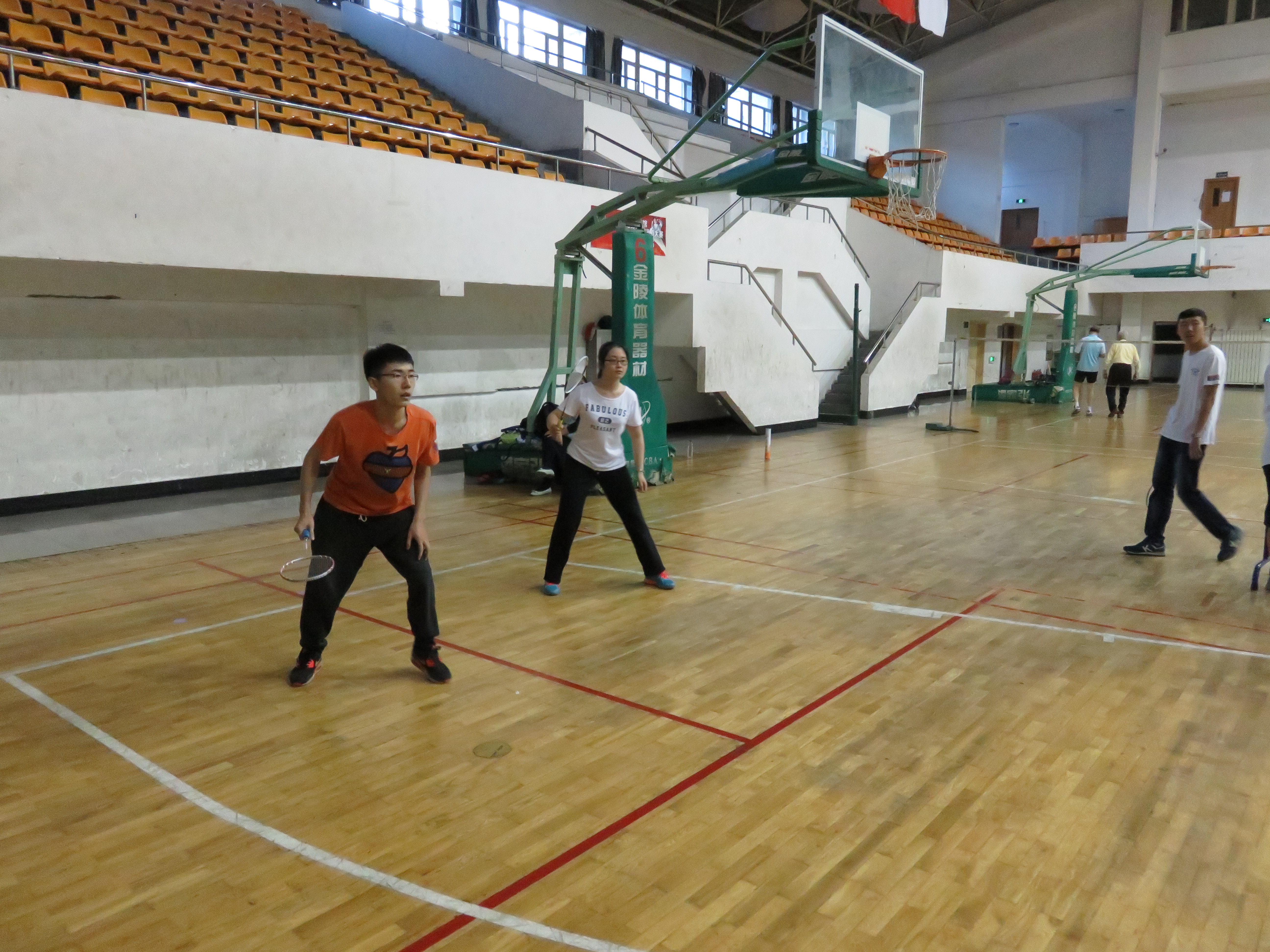 良好的精神风貌。整场比赛中参赛选手们精湛娴熟的技法博得了现场观众们的阵阵喝彩,加油声不绝于耳、笑声不断。选手们使出浑身解数,时而分离扣杀,时而轻盈吊球,每道招式尽是精彩真正赛出了风格赛出了水平。首先进行的是女单比赛,于明媚、田红英等各自高超的技艺让大家折服,顺利地夺得晋级半决赛的席位,最终于明媚同学技高一筹,夺得女单冠军。男单比赛更加精彩,经过激烈竞逐,岳永高、尚小虎等突出重围杀入四强。决赛虽采取三局两胜制,但每一局都十分重要。决赛中比赛氛围相比淘汰赛进入白热化阶段,比分紧咬一路厮杀到8比8平。最终岳永高不负众望获得冠军。男双和混双同样精彩,冠军分别是王伟和尚小虎、王伟和李娜。