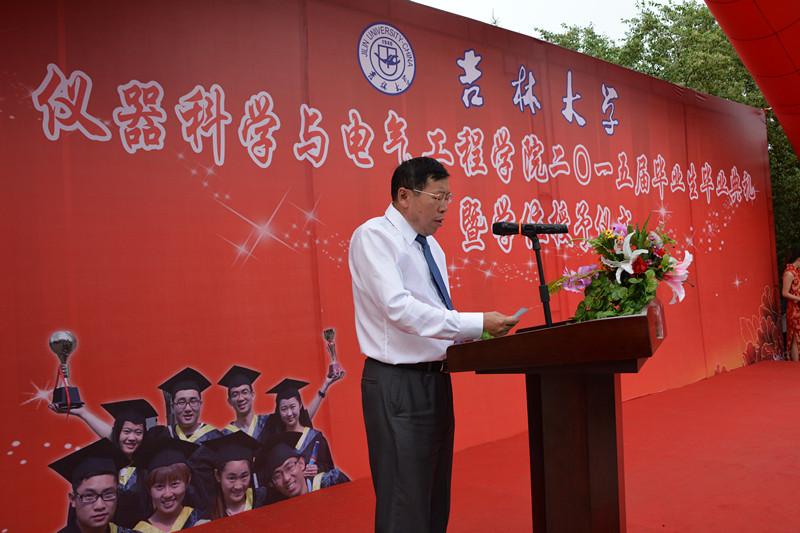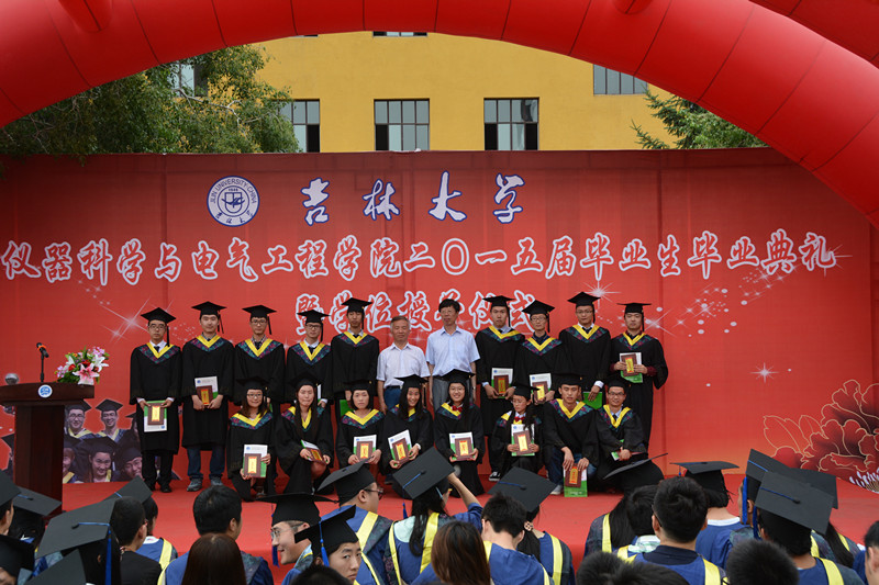 2015届研究生毕业生和本科毕业生名单,院长林君教授与院学科学位委员会副主席嵇艳鞠教授一起为2015届毕业生授予学位。随后,院党委书记余国友教授宣读了2015届校优秀毕业生名单,并为优秀毕业生颁发获奖证书、合影留念。学院教学委员会主任王应吉教授宣读了优秀毕业论文名单,仪器系主任凌振宝教授、电气系主任刘长胜副教授分别为获得优秀毕业论文的同学颁发证书并合影留念。之后,教师代表王应吉教授和2015届毕业生代表、A片网站