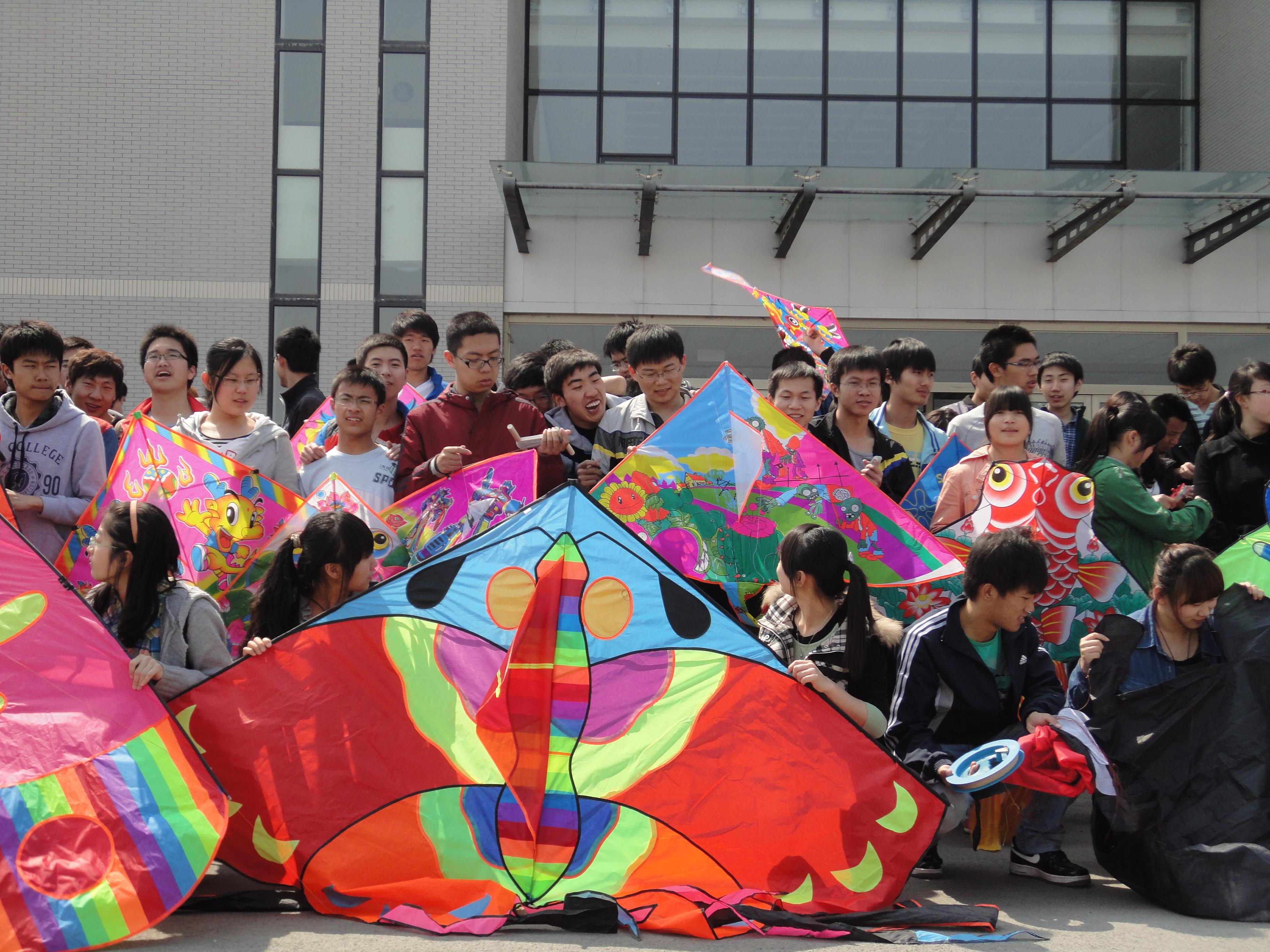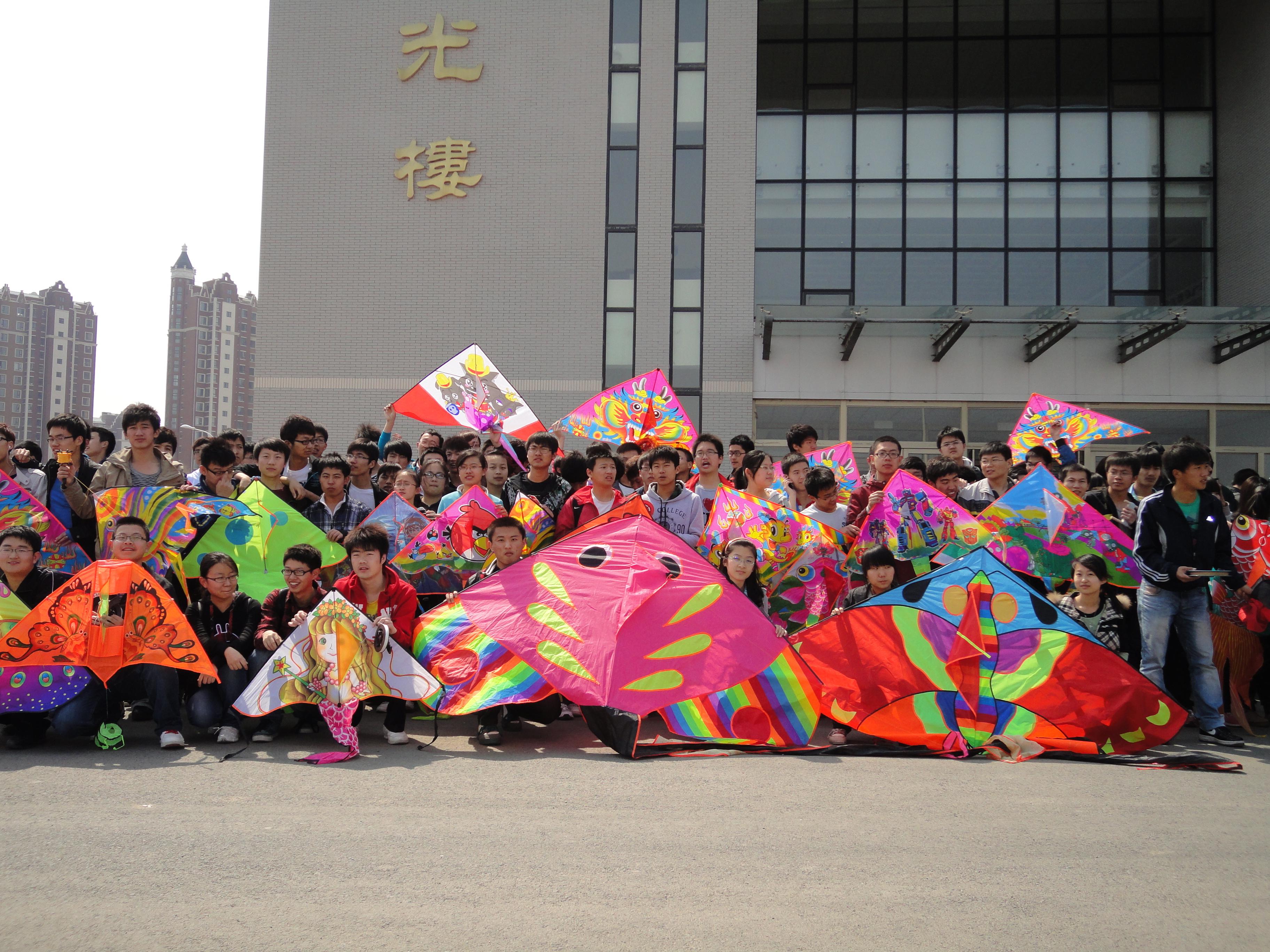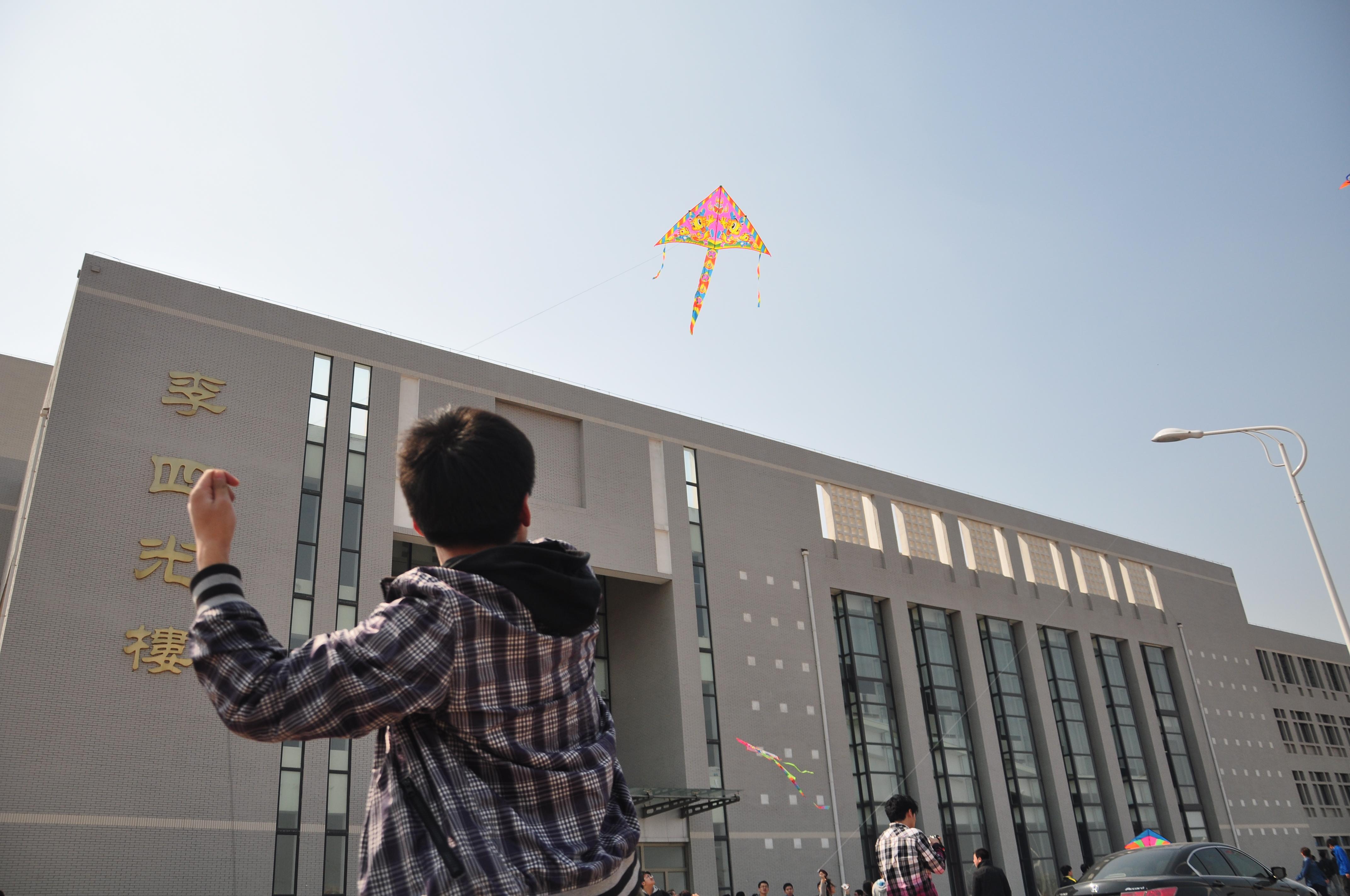 阳春四月,春风徐徐——伴着灿烂的阳光,同学们带着准备好的风筝早早地来到李四光楼前集合,大家的风筝形状各异、五颜六色,有的是购买的,也有的是自己亲身制作的,但是在每个风筝上同学们都写下了自己新一学期的希望和梦想。中午12:00活动正式开始,在短暂的合影留念后,各学院同学有序地来到各自学院的区域内,大家分工明确、团结协作,在很短的时间内一只只风筝都已迎风飞翔,天空中各种美丽的风筝绘成一幅美丽的画卷。活动过程中,各学院的同学欢声笑语、相互交流、其乐融融,现场热烈的氛围吸引了许多路人驻足观看,大家对放风筝这样的传统文化活动给予了高度的评价。活动持续进行了近两小时才圆满结束。据悉,为了节俭环保,同时深入落实“学生公寓文化建设年”方案,此次活动中使用的所有风筝将在之后用于“学生公寓文化长廊”建设。