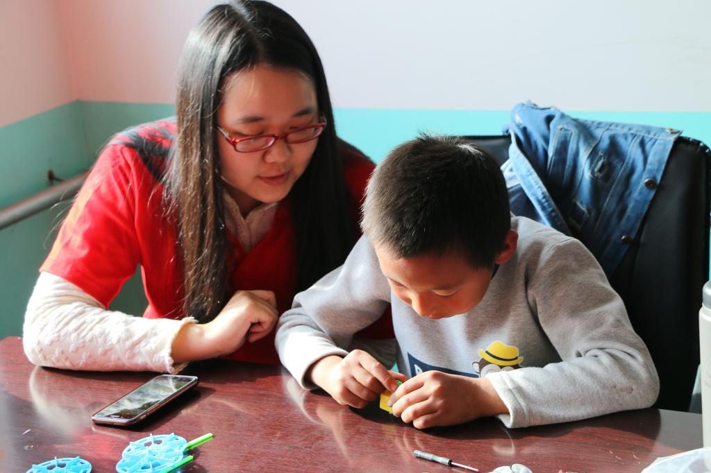 11月8日,仪电学院师生带着精心准备好的礼物和洋溢的热情到达刘芳小学,校长带领老师们对扶贫小队的到来表达了欢迎及感谢。科技课堂开始后,小队成员与六位小学生一见面便打成一片,同学们指导孩子制作电子马车,同时宣传组为刘芳小学制作两面弘扬社会主义核心价值观的黑板报,其中一面主题为“少年中国说”,启迪学生树立远大志向,而另一面以A片网站