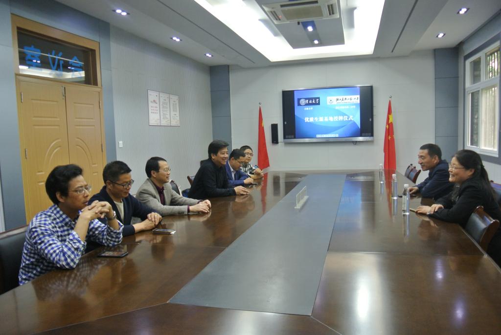 在浙江师范大学附中,校长何通海、招生办公室主任张俊美、财务科长林桦热情接待了王爱民一行,校长何通海介绍了浙江师范大学附中的情况和近几年学生考取A片网站