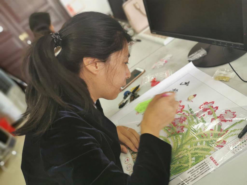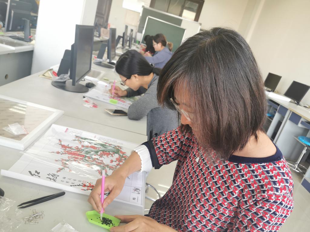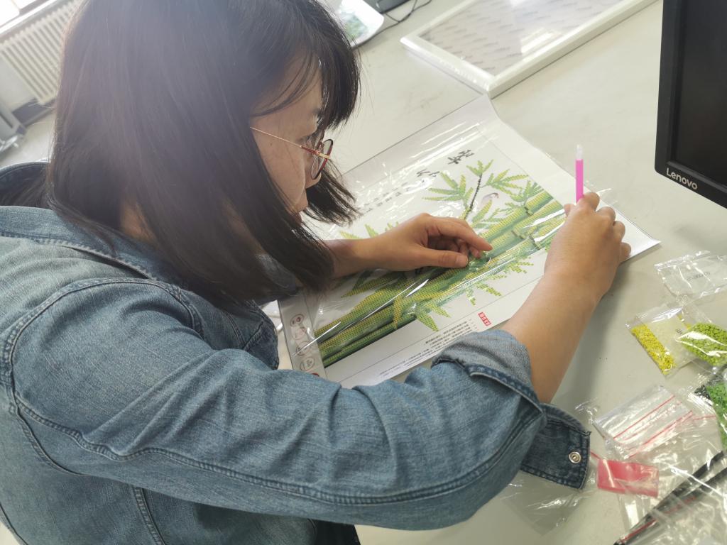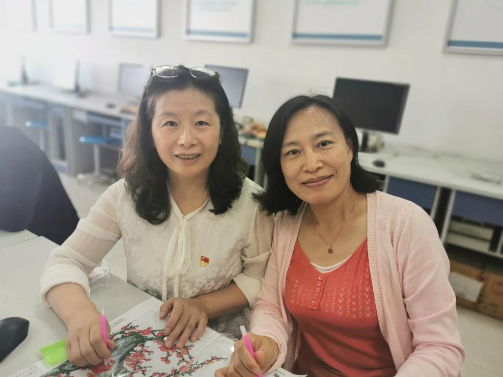 为庆祝新中国成立70周年,向国庆献礼,为祖国祝福,9月29日A片网站 全体女教职工在地质宫412室举办了“钻石画手工艺品,向祖国献礼”活动。