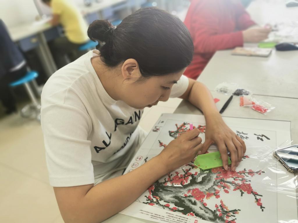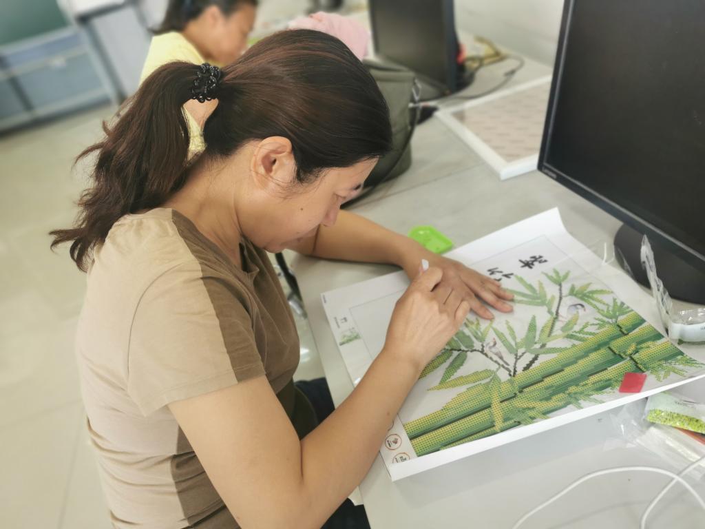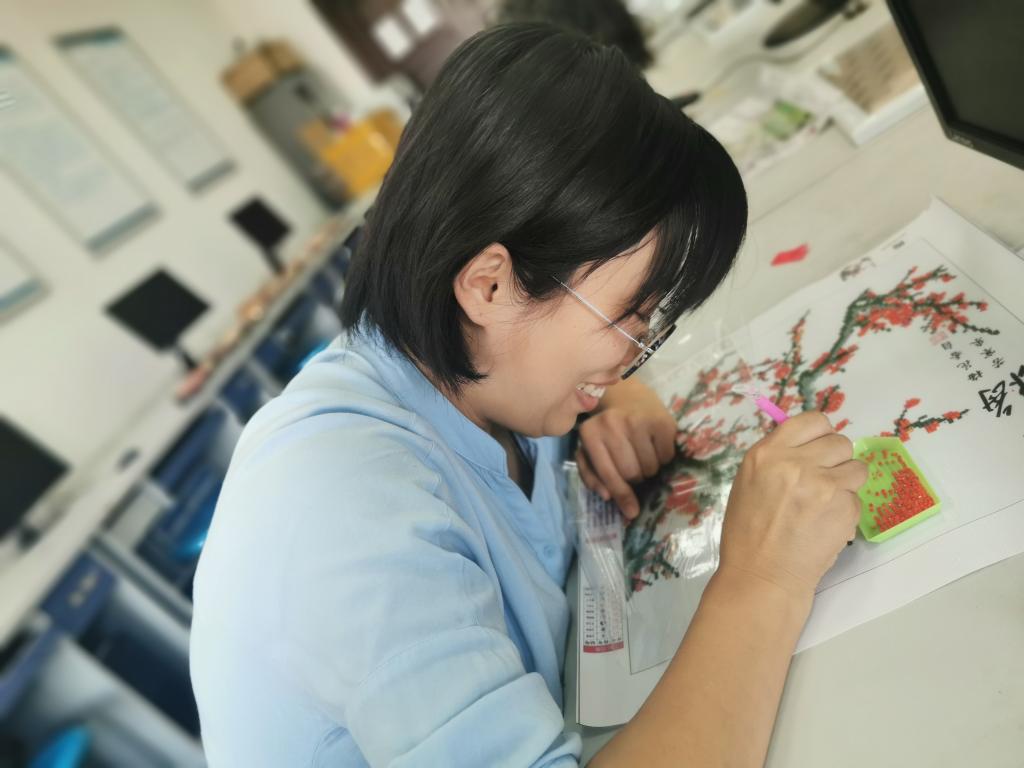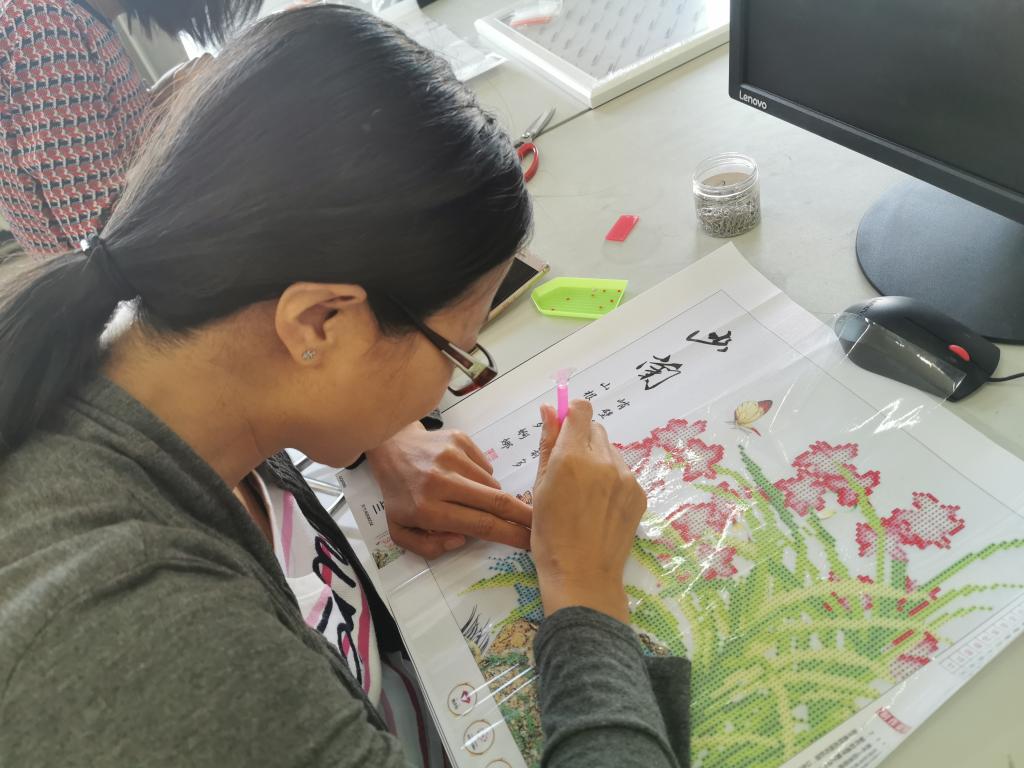 为庆祝新中国成立70周年,向国庆献礼,为祖国祝福,9月29日A片网站 全体女教职工在地质宫412室举办了“钻石画手工艺品,向祖国献礼”活动。