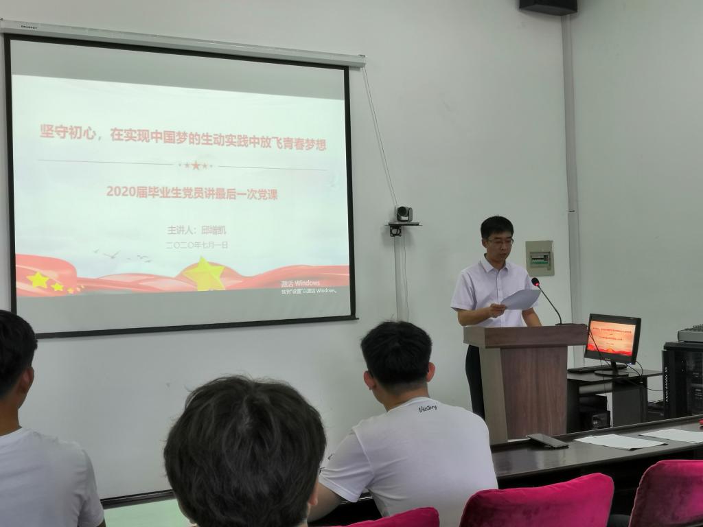 在地质宫330开展2020届毕业生党员最后一次党课暨重温入党誓词活动,学院党委副书记邱增凯,党委副书记兼副院长周伟,测控技术与仪器专业本科生党支部书记马姗姗及全体毕业生党员参加本次活动。活动由党委副书记兼副院长周伟主持。