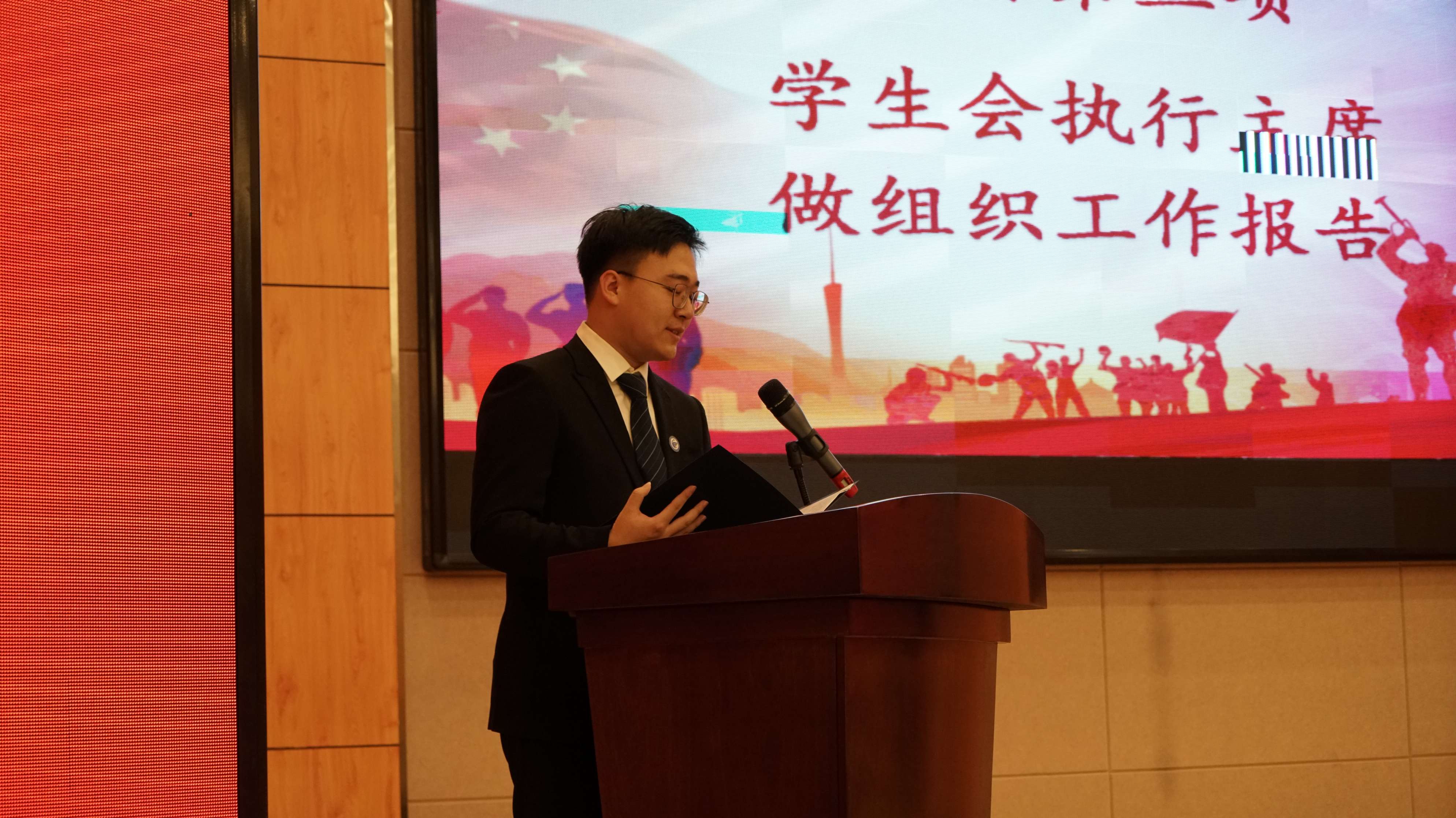 第十六届团学组织工作报告》,向与会学生代表汇报了过去一年中学生会开展的各项工作。