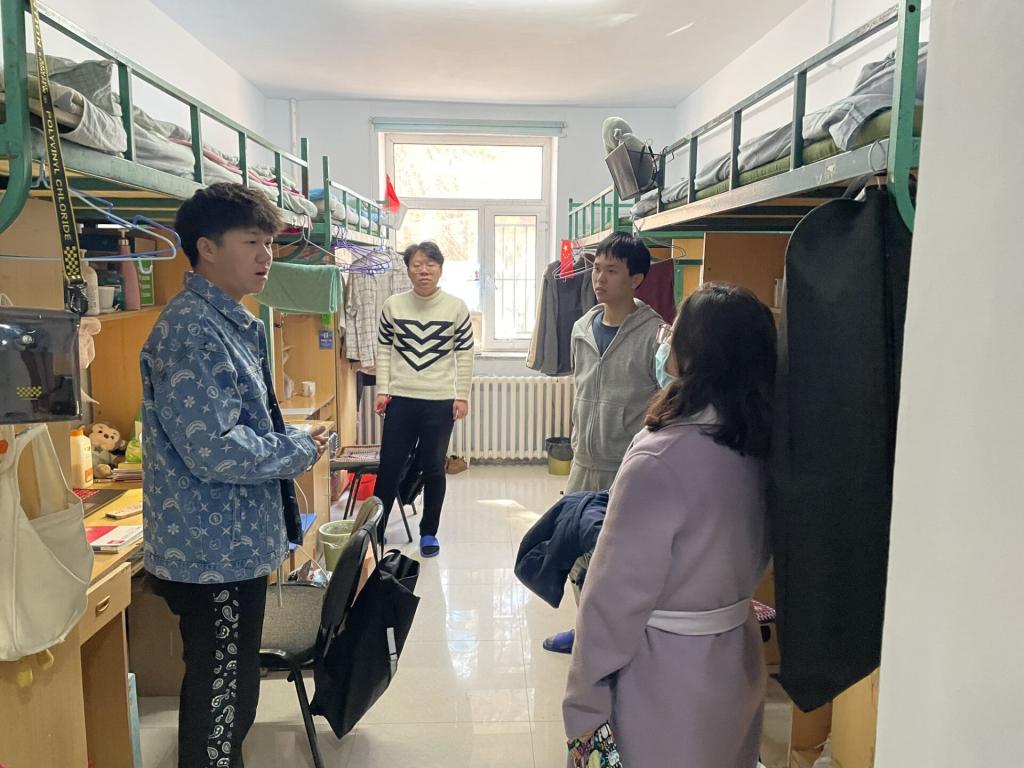 走访过程中,学院领导们与同学进行亲切交谈,询问了同学们在疫情特殊时期的学习生活,进一步了解了学生对线上网课,封闭管理等疫情期间特殊安排的适应情况,及时沟通并处理了现存的困难和问题,对同学们出现的焦虑心情表示理解,同时提醒大家做好个人防护工作,合理安排学习生活,封校不停学,保证学习状态和质量,保持良好心态,静等战胜疫情的好消息。最后学院领导再次叮嘱同学们做好个人防护工作,积极配合学校疫情防控工作,在学习生活中遇到问题,可以向辅导员老师提出建议,寻求帮助。收到学院领导关心和帮助的同学们感受到了来自学院的温暖,纷纷表示对战胜疫情充满信心,在特殊时期防疫学习两不误,积极配合学校工作,一起共克时艰。