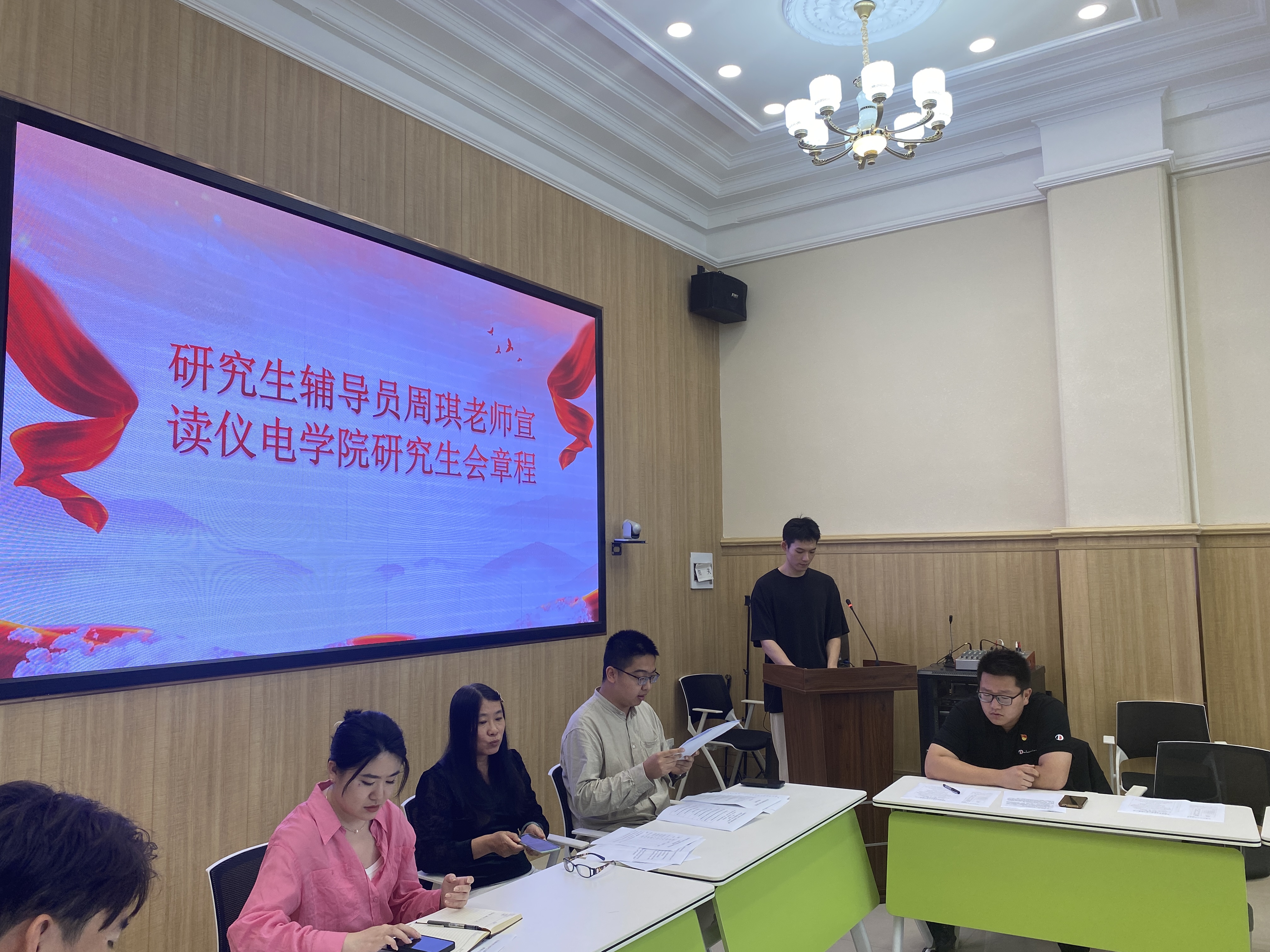 第八届研究生会换届大会在朝阳校区地质宫208多功能厅顺利召开。学院研究生办公室主任杨冬老师、研究生秘书杜晓夏老师、研究生辅导员周琪老师、第七届研究生会全体负责人、第八届研究生会负责人候选人以及各年级研究生代表等参加了大会,会议由2022级硕士研究生班长刘苏辉主持。