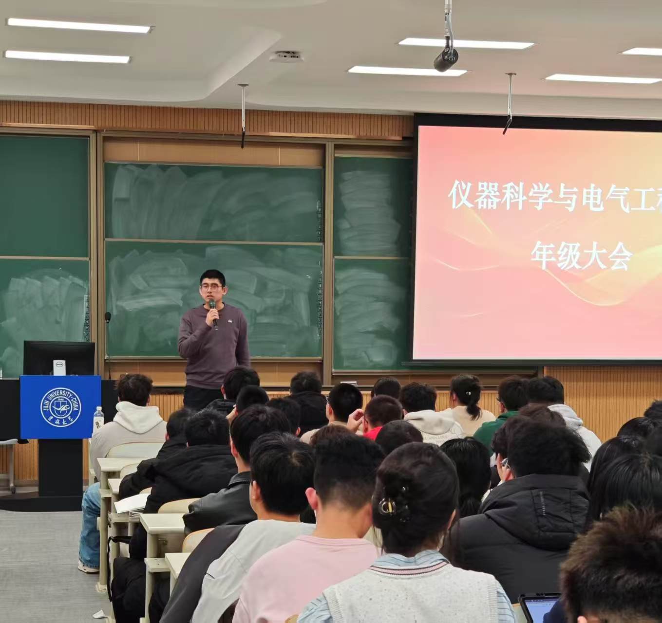 2024级辅导员王文轩于2025年2月26日,在李四光教学楼召开2024级学生年级大会。