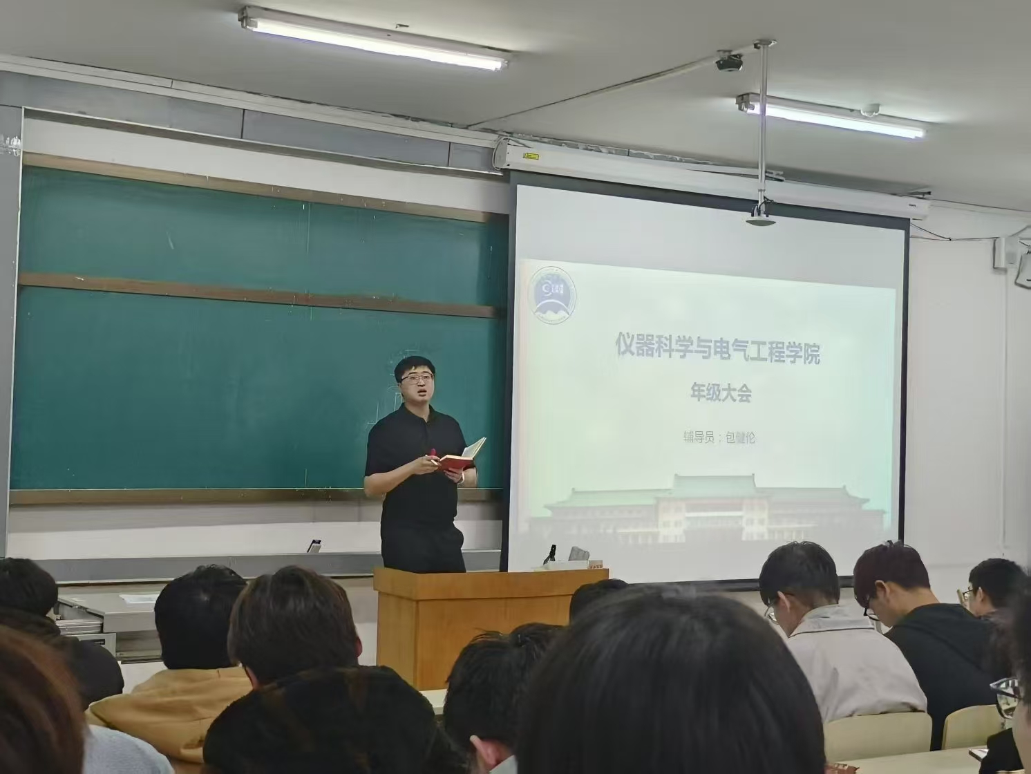 于朝阳校区水工楼517教室召开2022级年级学生大会,辅导员包健伦老师出席大会并进行专题指导讲话,大三全体学生参加了本次大会。