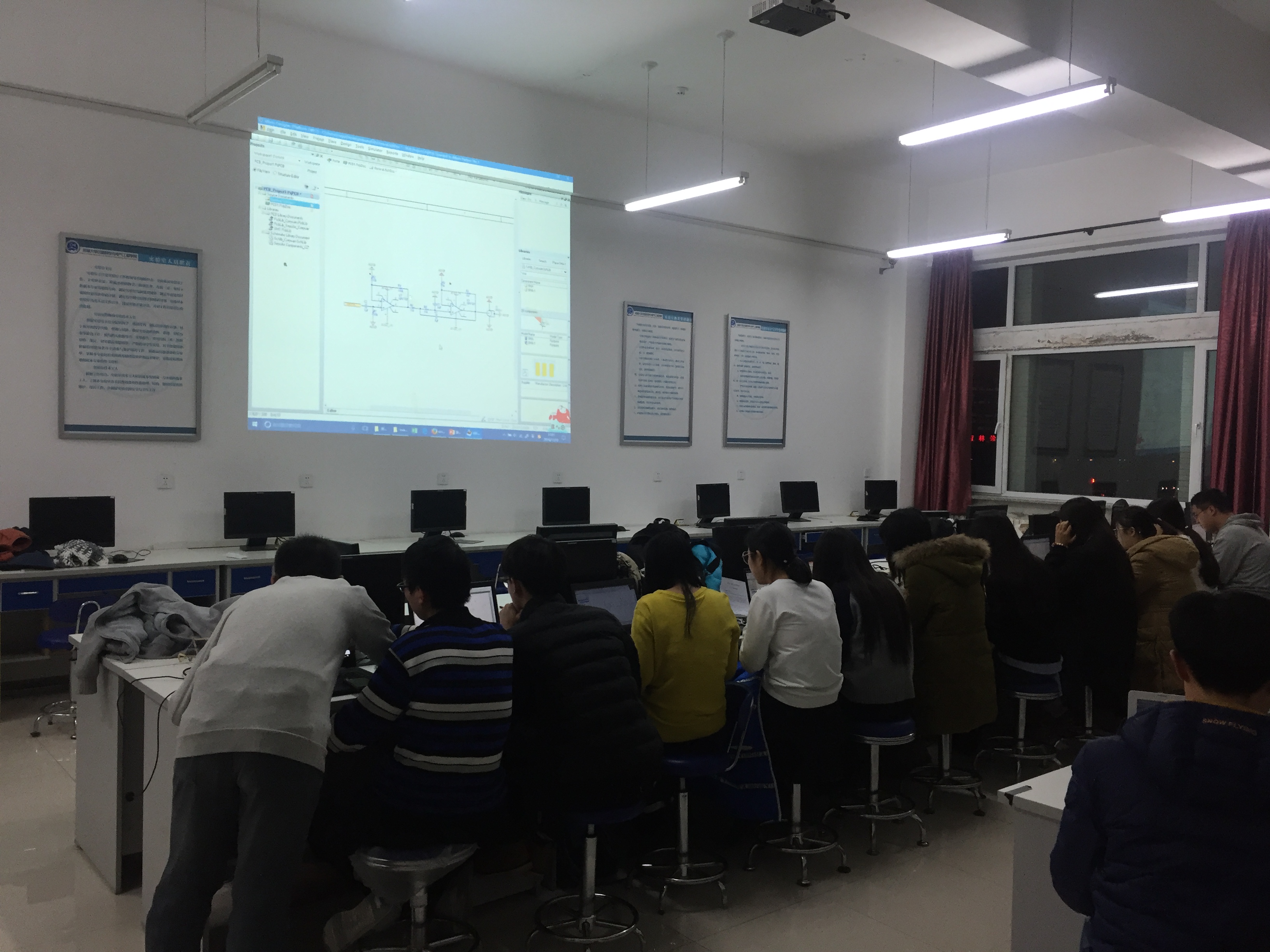 10日16点15分,主讲人曹泽元首先为大家介绍了此次培训的大纲,就多通道PCB设计这部分内容向大家提出了几点学习要求。接着,主讲人从上一期培训的基础上深入浅出地为大家讲解PCB多通道信号材料,在上一次培训原理图完成的基础上讲解了如何绘制双通道PCB。主讲人详细地解决15级实验室成员遇到的各种问题,一步一步带领大家深入双通道的设计的层层面面;次外,主讲人讲解了元器件的封装,如何选取封装,以及如何在PCB图的设计中,对一个通道的处理到两个通道的处理。当然,主讲人还讲述了规则的选取,给大家充分的时间来完成讲解的内容,更加的熟悉DXP的设计;在培训的最后,主讲人对今天所讲的内容进行了回顾,同时对下一期的培训内容进行了大致的讲解并对我们需要注意的地方进行提醒。至此,DXP第二期的培训圆满结束。