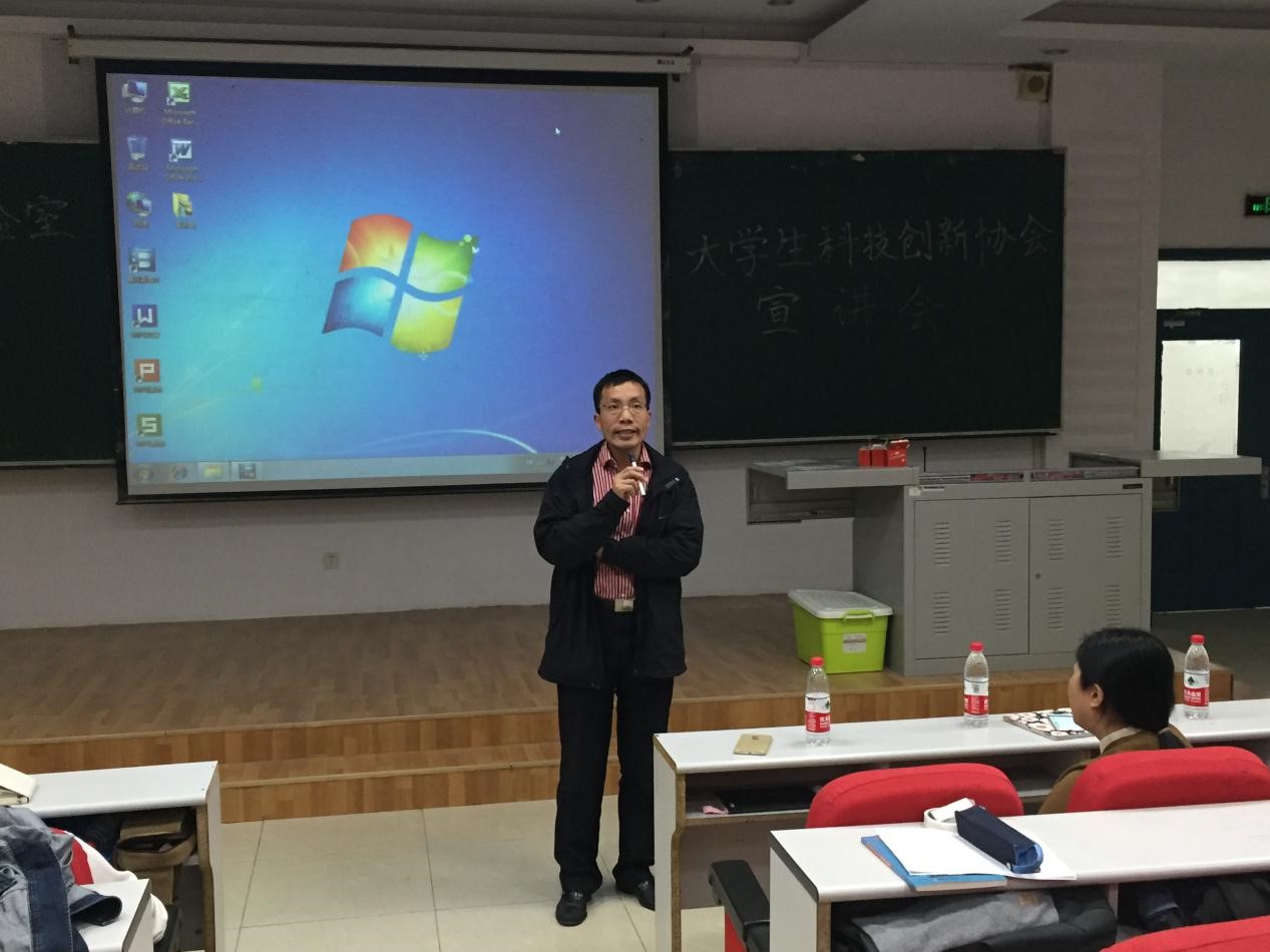宣讲会在13级216+开放实验室成员风采展视频的播放下拉开帷幕。之后,陈祖斌教授为在场的学生做了简短性的发言。发言主要围绕“自主学习”、“自我实现”、“规划未来”几个方面进行,着重探讨了大学生涯中如何实现自己的价值,实现自己的梦想。陈祖斌教授的发言简洁明了,获得在场学生的如潮掌声。紧接着,13级实验室成员通过精美的PPT以小组的形式介绍自己的情况,个人心得,同时分享了自己获得的成就以及背后的苦与乐。然后,新任科协主席李继源同学就大学生科技创新协会向16级新生做了简单的介绍,并呼吁大家参与到协会的培训,从培训中提高动手能力。最后,千承辉老师做了总结性讲话。讲话中,千老师充分肯定了13级实验室成员在过去一年中做出的成果,并向每一位付出过努力的成员表示祝愿,希望他们在接下来的生涯里越走越远。此外,千老师也向在场的14、15、16级学生提出要求,要求他们向13级实验室成员学习,在搞好学业的同时提高自己的动手能力与创新发明的能力,争取在前人的基础上取得更大的成果。