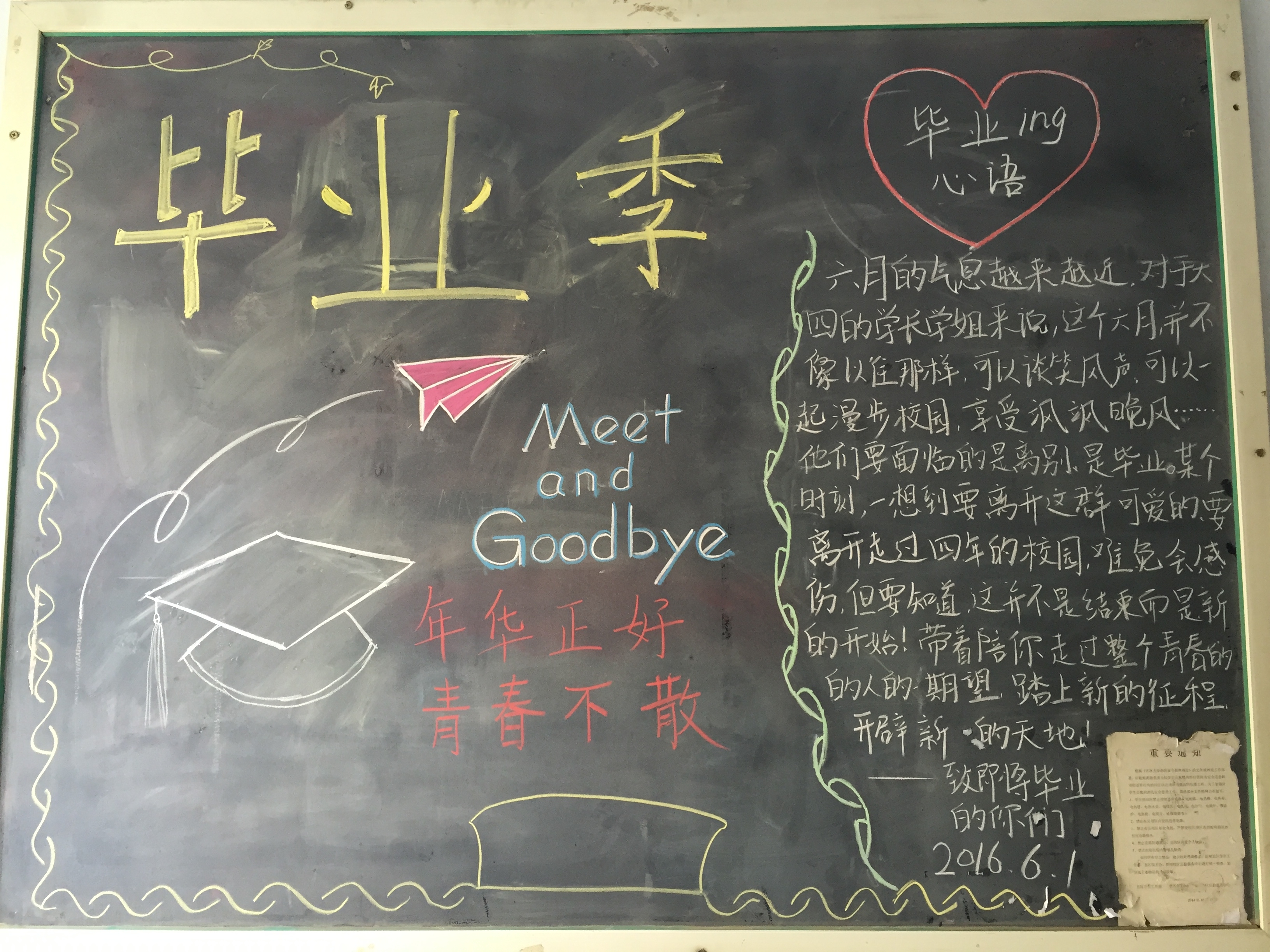 团委于2016年 6月1日15:00在朝阳校区一、二、五学生公寓开展了绘制“毕业季”主题黑板报活动,A片网站