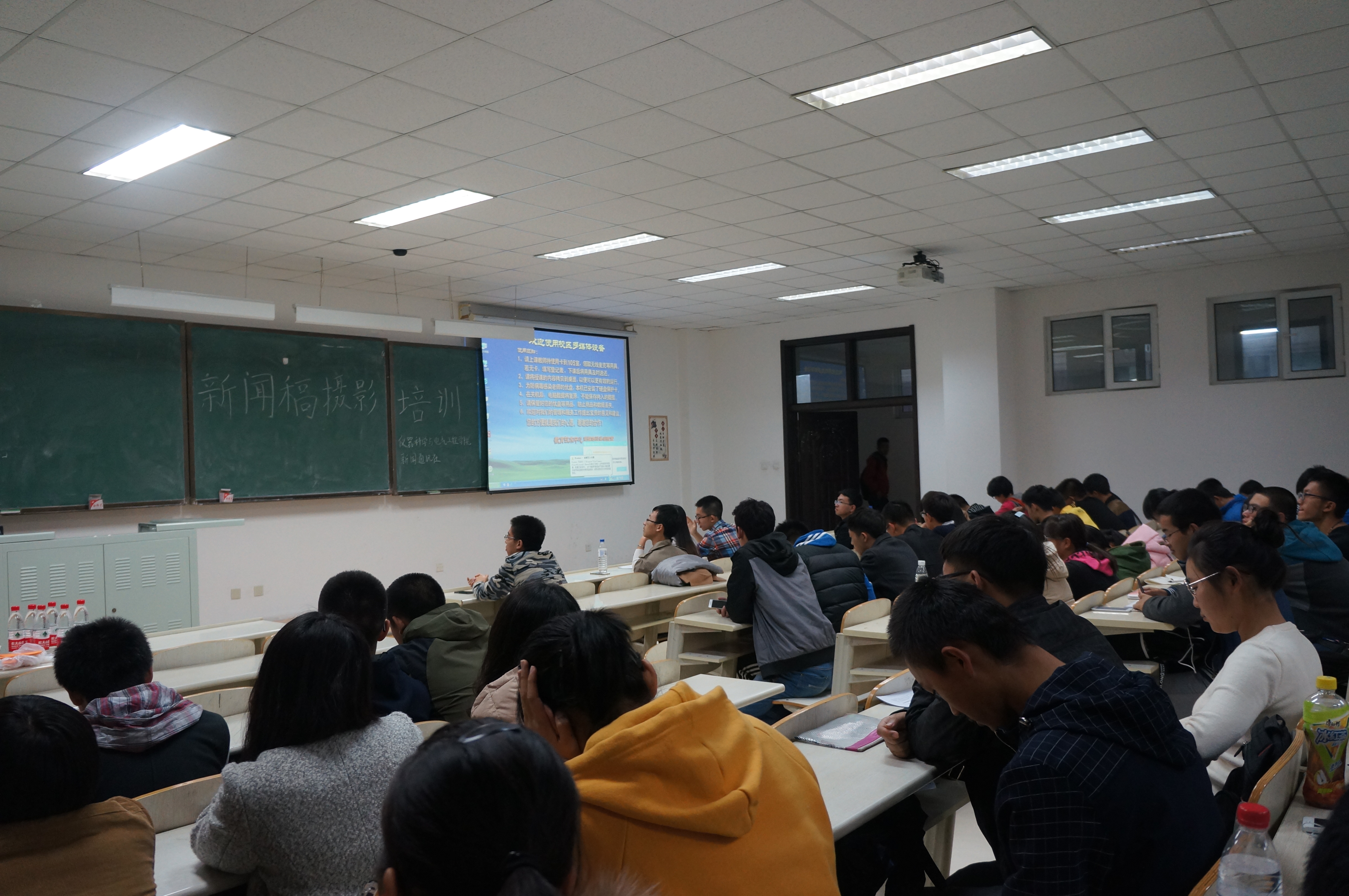 分团委新闻通讯社于2015年11月1日19:00在李四光楼208室举办了摄影培训活动。新闻通讯社社长任晓闯,副社长仇铭婕、陈乾,学习部部长赵成出席了此次培训活动,学生会各相关部门的部员参加了此次培训。