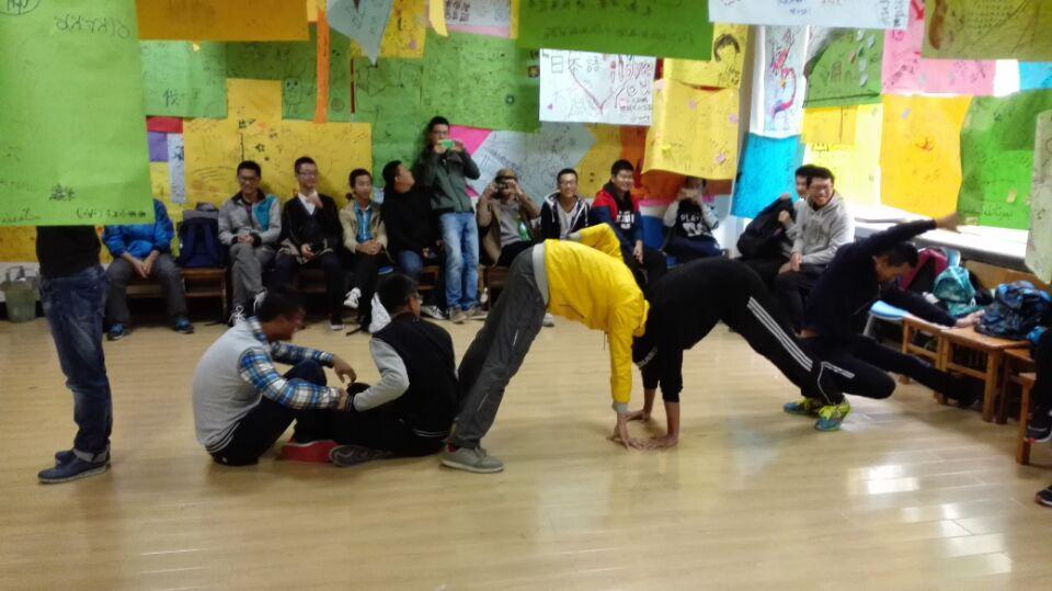 首先,心理部副部长给同学们强调了心理健康的重要性,同时让大家放松心情,全身心地投入接下来的活动。热身结束后,开始了游戏项目。“一分钟鼓掌”活动,让同学们明白了准确地估计自己的能力绝非易事以及其重要性,“温柔体操”和“无家可归”活动,提高了同学之间的默契度,让大家感受到了集体的温暖和力量,明白团队合作的重要性,“信任之旅”和“人椅破冰”活动,消除了同学之间交流的障碍,真正体现了“破冰”的意义。游戏结束后全班同学进行了合影,此次活动圆满结束。