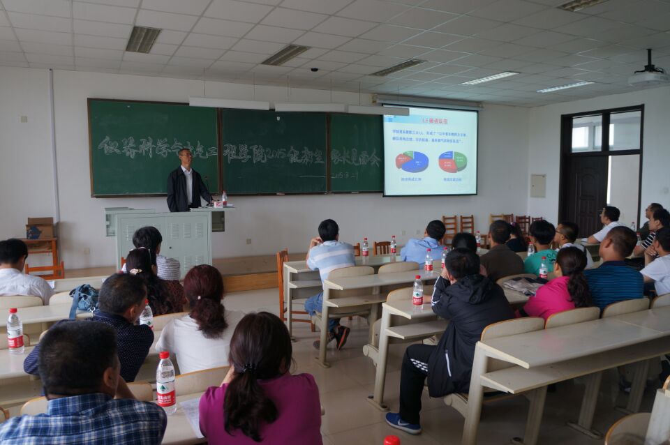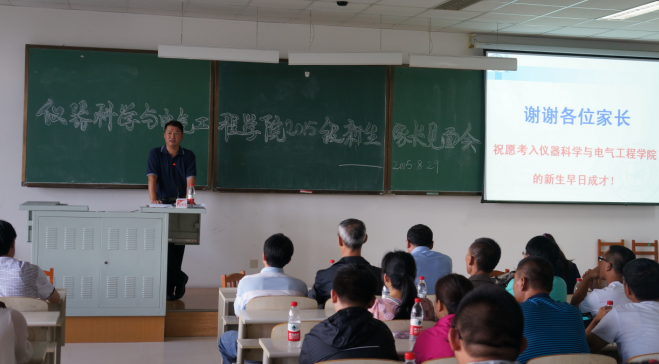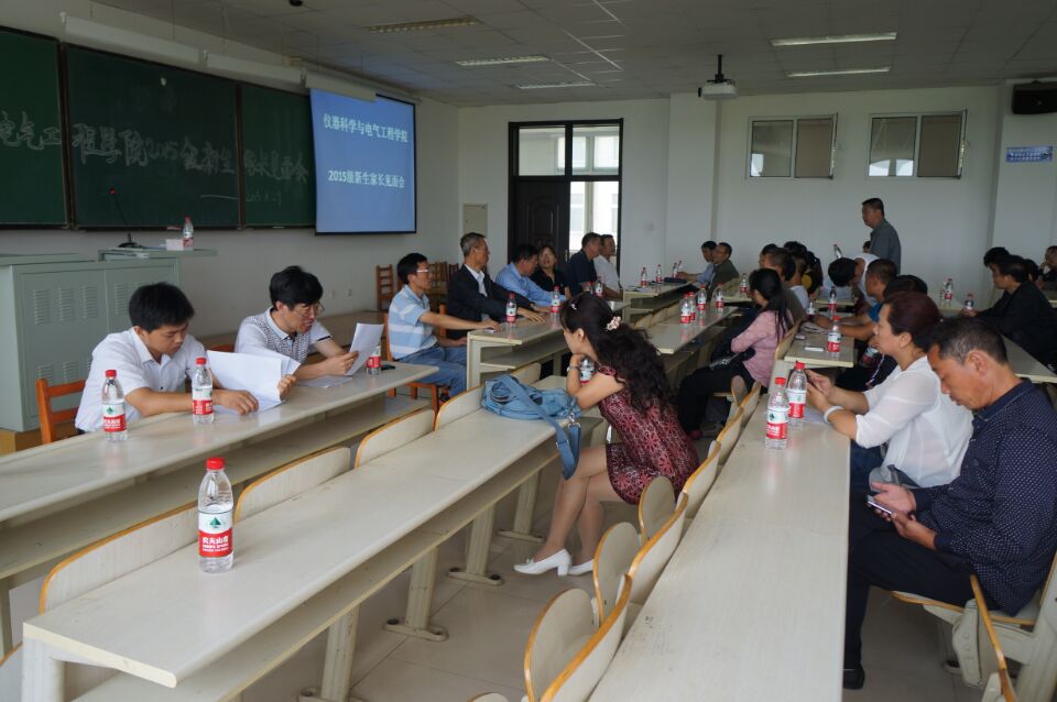 院长林君教授、院党委书记余国友教授、院党委副书记兼副院长邱增凯老师、副院长陈祖斌教授、副院长嵇艳鞠教授、仪器系主任凌振宝教授、电气系主任刘长胜副教授、2015级新生辅导员张昊宇老师出席了座谈会。2015级新生家长及部分新生参加了此次座谈会。会议由院党委副书记兼副院长邱增凯老师主持。