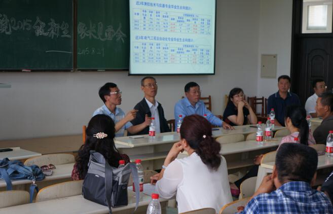 特有“六个一”工程等方面进行了详细的介绍,并表示学院会以学生为本,努力为学生创造一流的学习与实践条件,让学生在这四年中塑造自己,充实自己,成为社会精英,为祖国的建设和发展做出自己的贡献。院党委书记余国友教授重点强调15级新生应加强自身修养和提高整体素质,尽快适应大学生活,做到以学习为主,全面发展,完成角色转变,正确树立自己的人生目标,合理规划自己的四年大学生活,在学校生活中养成良好的学习生活习惯,自立自强,做到学有所成,做有所为。陈祖斌副院长就本科生教学事务中的学期制、学分制、本科生导师制等家长关心的问题做了详细的介绍。之后,院党委副书记兼副院长邱增凯老师为大家介绍了学院的学生工作情况,他主要从辅导员职责、党团组织建设、奖学金评比、减免贷助、就业指导等方面进行了详细介绍。最后,各位领导老师与新生家长进行了面对面的交流,就新生家长提出的有关学生日常学习生活、就业、保研、出国深造等问题、疑惑,院领导们耐心、详细地给予了解答,座谈会在亲切、热烈、愉快的氛围中圆满结束。