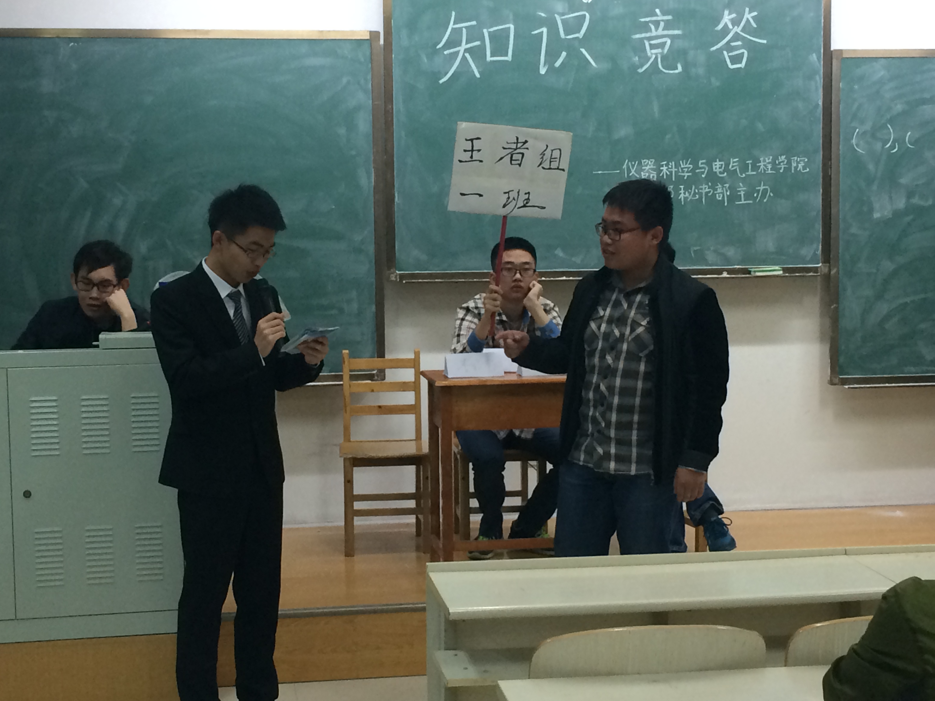 第十届分团委、学生会于2015年3月至5月开展了班级风采大赛系列活动。2015年4月30日晚,一站到底知识竞赛在中心校区李四光楼208室举行,院学生办公室主任兼2014级辅导员王冕老师、第十届分团委学生会全体学生干部出席了活动,2014级全体新生同学参加了活动。