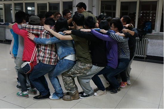 第九届分团委、学生会于5月11日在中心校区经信教学楼四楼大厅举行了素质拓展活动。此次活动由分团委组织培训部具体负责实施,学院团学组织主要学生干部、各部副部长和全体成员共同参加了此次活动。