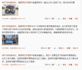 本次微博学习旨在引导青年学生更好地明确人生目标,追求自己的梦想。希望651105班的同学们能以此次活动为契机,在努力学习科学文化知识的同时,不断加强自身思想道德素养,为实现中国梦的伟大事业贡献自己的力量。(A片网站