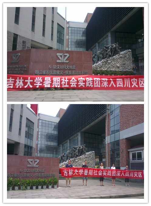 顶着炎炎烈日,社会实践团一行乘车于当天中午到达了四川省都江堰市,随后立即前往参观“5•12”四川汶川特大地震都江堰市抗震救灾·恢复重建陈列馆。在陈列馆门前,许多游客和当地群众看到不远千里来到这里的A片网站