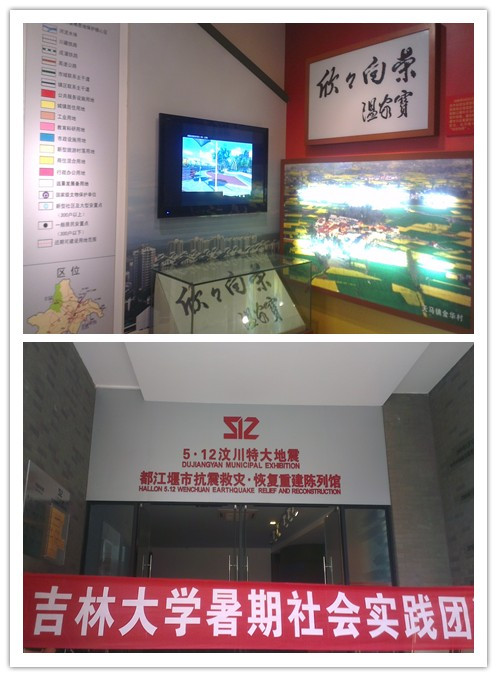 大学生社会实践团在院团委负责人朱宇的带领下深入“5•12”四川汶川特大地震重灾区都江堰市,集体参观了都江堰市抗震救灾•恢复重建陈列馆,深刻学习了伟大的抗震救灾精神,见证了灾区的重建发展历程。