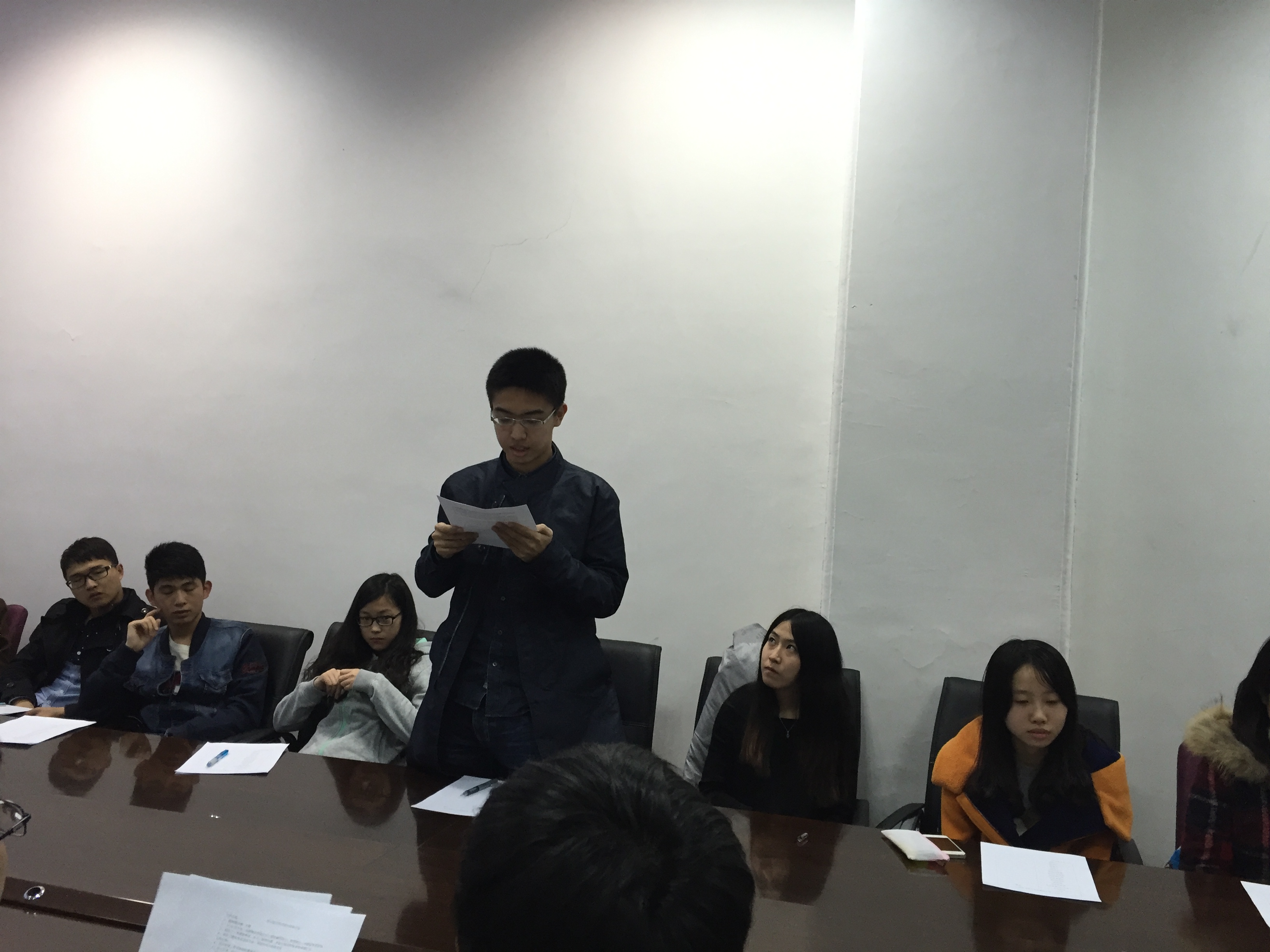 会议第一阶段,各部门部长依次进行了工作述职,分别概括了上一学期活动开展的具体成果以及在学生集体中产生的影响,同时展望了下一学期的工作安排。随后,张昊宇老师针对大家的发言做了详细的点评,他首先肯定了大家上一学期的工作成效,表示了学生工作的重要性,其次一一明确了各部门下一学期的工作开展方向,以全团深化改革年、迎接学校70周年校庆为契机,使团委学生会的工作系统化和创新化,大力鼓励开展系列活动和创新性活动,给各部门活动的开展提出了指导意见。最后,张昊宇老师鼓励大家在新的学期再接再厉,尽心竭力举办出优秀的活动,切实服务同学。最后,会议在温馨愉悦的氛围中落下帷幕。