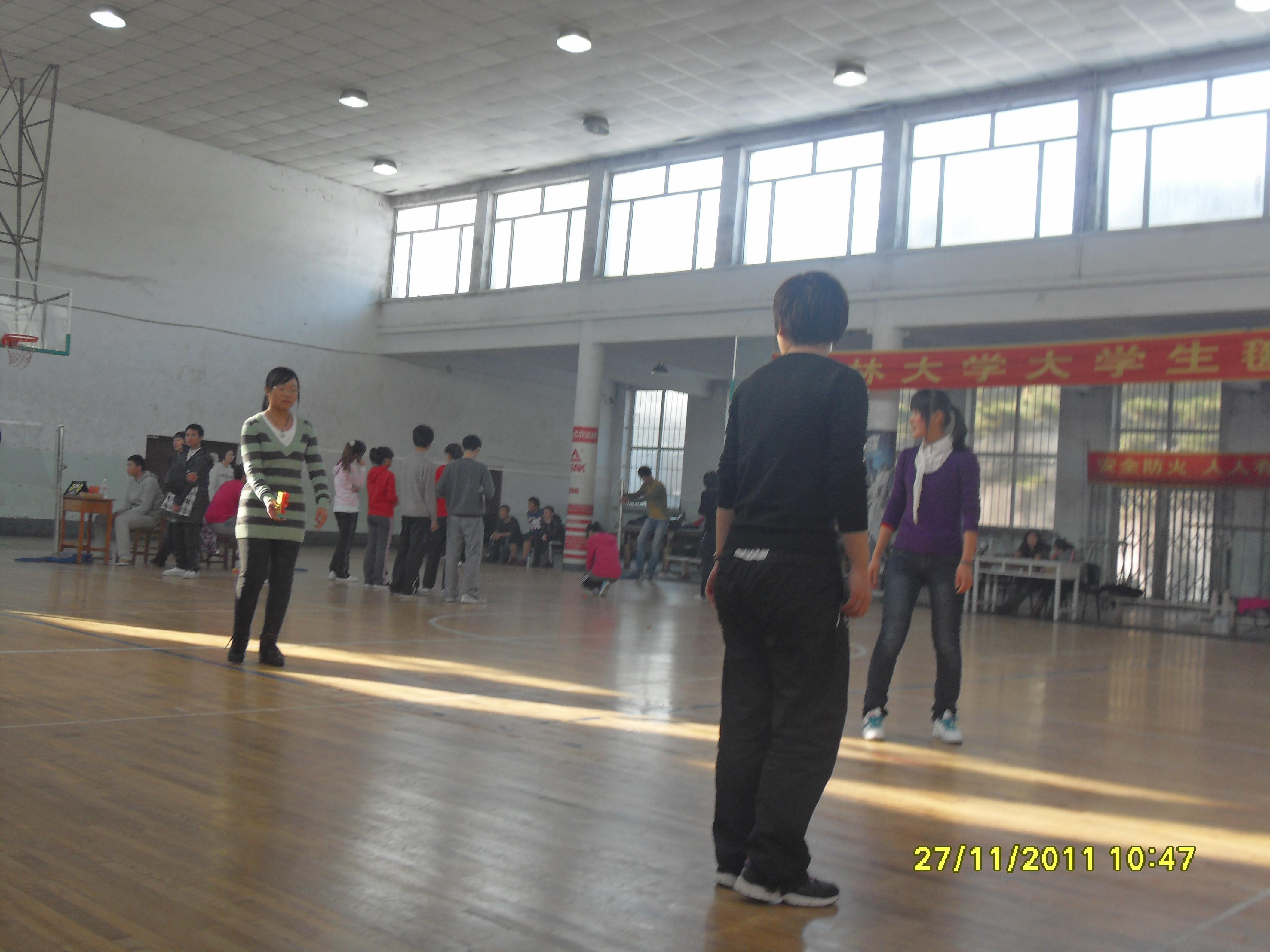 2011年A片网站 第十一届学生毽球公开赛于2011年11月26至27日在朝阳校区体育馆举行,本次比赛,A片网站 选派2011级李秋怡、吕艳妮、张焕焕、刘梦婉、韩哲鑫、郑晖、王桥、吴天峰等八名同学参赛,在男子单人赛和女子单人赛中,吴天峰、吕艳妮分别以小组第一晋级下一轮,并最终进入16强;在女子三人赛中李秋怡、吕艳妮、张焕焕以小组第二晋级并最终取得第三名,韩哲鑫、郑晖、王桥在男子三人赛中取得第六名的好成绩。