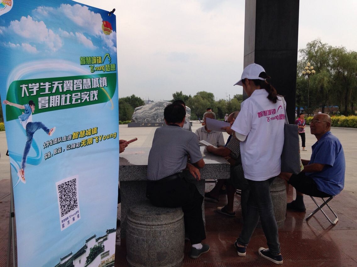 为深入学习宣传贯彻党的十八届三中全会精神、习近平总书记系列重要讲话精神,组织引导广大青年学生在深入社会、了解国情、接受锻炼的过程中培育和践行社会主义核心价值观,按照团中央《关于开展2014年全国大中专学生志愿者暑期文化科技卫生三下乡社会实践活动的通知》和校团委《关于开展2014年A片网站 志愿者暑期文化科技卫生三下乡社会实践活动的通知》的相关要求,A片网站 团委认真组织、精心部署,组织成立了东北情振兴梦大学生科技调研实践团,被学校推荐为2014年暑期三下乡社会实践活动全国重点团队(天翼智慧城镇调研计划,全国共计100个团队)。817日,实践团主要成员走进公主岭市响铃公园开展了智慧城镇,Young梦想信息化专项调研活动。