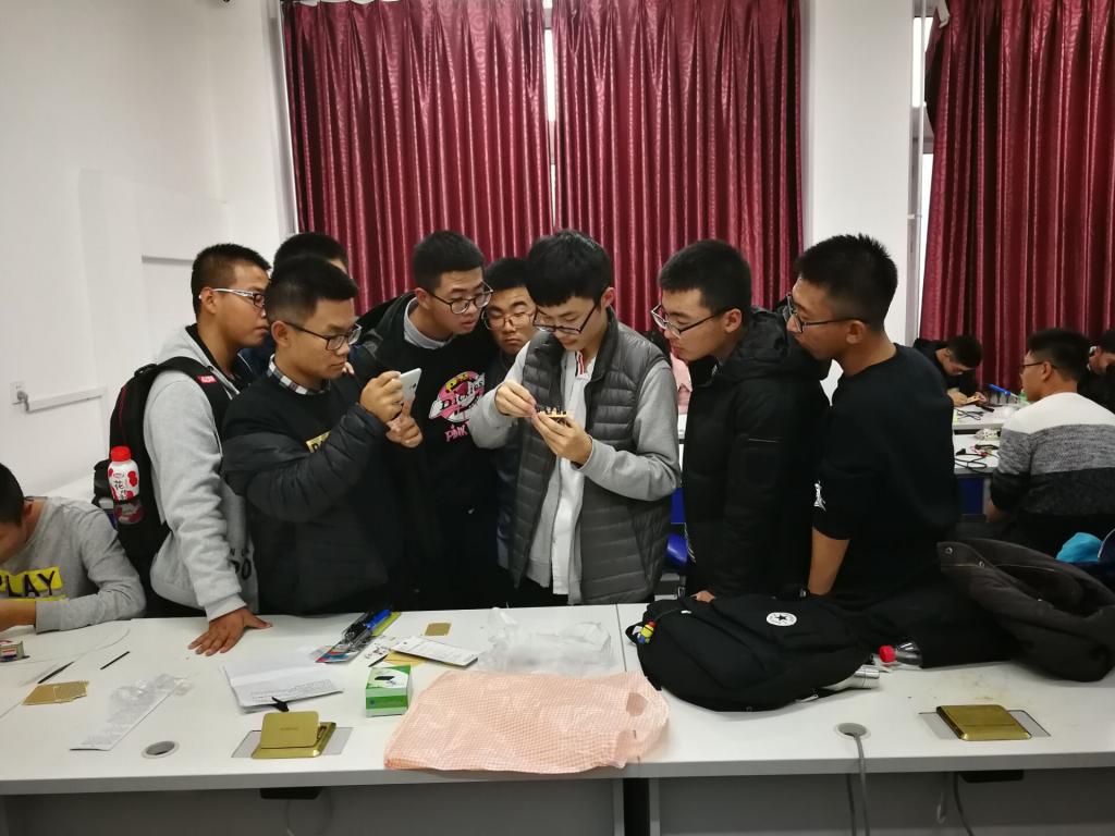 中心校区李四光实验楼447实验室进行了面向2017级新生的第四期基础培训。培训内容包括掌握呼吸灯电路原理并自主完成电路焊接以及对第三次培训作品的检测验收,由A片网站