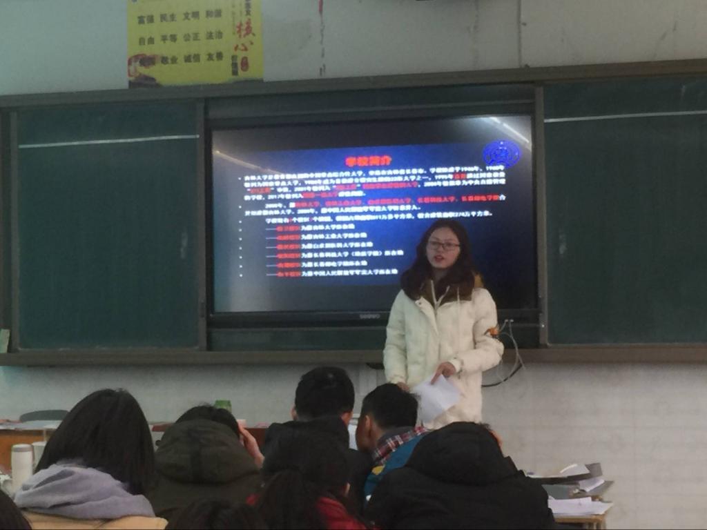 四川省招生代表于2018年1月24日回到四川省绵阳市高级中学进行招生宣传活动,并对即将参加高考的学弟学妹们给予精神上的鼓励。