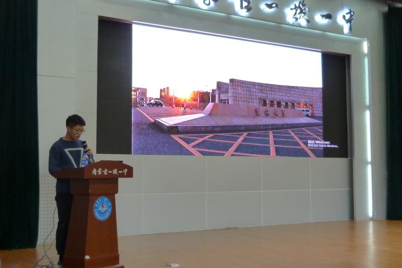 、宣传仪电学院,仪电学院2017级同学组织了多个宣讲团队,回到各自的母校高中宣讲。其中内蒙古自治区有两个队伍,一个是前往一机一中宣讲的王宇航同学的队伍,另一个则是前往包钢一中宣讲的曲德馨同学的队伍。
