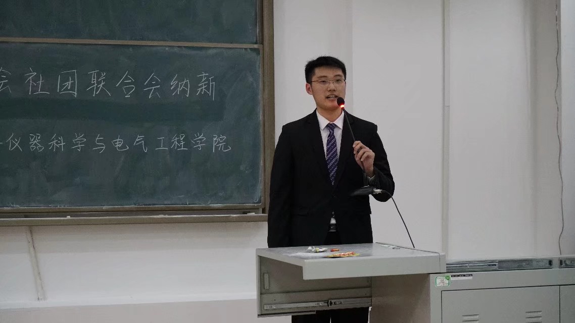 慷慨激昂的团歌拉开了本届纳新大会的帷幕,首先由分团委副书记仲点石作出学生组织工作报告,向大家汇报了第十三届团学社组织半年以来的成果;而后,学生会主席马松辰向大家介绍了组织的结构,为接下来各部门的精彩介绍做了铺垫;最后,院社团联合会主席王华梁作出了组织的未来展望,为大家描绘了一副精彩的蓝图,振奋人心。接下来各部门部长以图片、视频等多种多样的形式向2017级同学介绍了部门职责及新一年的工作计划。新闻媒体社的积极向上,宣传实践部的踏实努力,组织培训部的井井有条,秘书部的缜密严谨,生管部的优异成绩,文体部的舞台魅力,心理部的文采横溢, 科协的累累硕果,生声论坛的能言善辩,牵手志愿者协会的爱心满满,无不让2017级同学报以热烈的掌声。