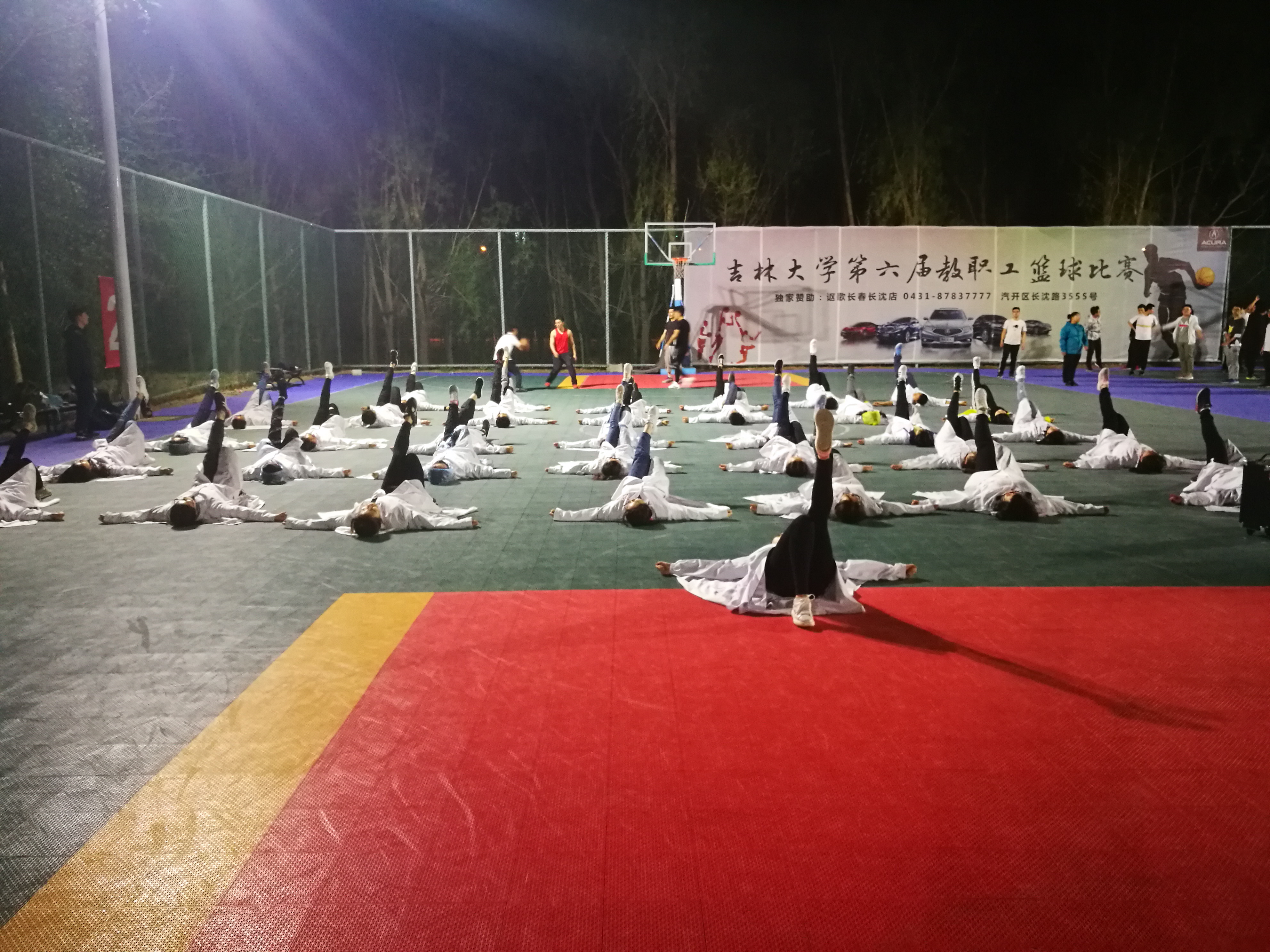 于2018年4月20日晚9:00起开始在体育馆东侧篮球场展开广播体操的训练工作。训练时间为每周的周二、周四、周五、周日的晚上9:00到10:30。