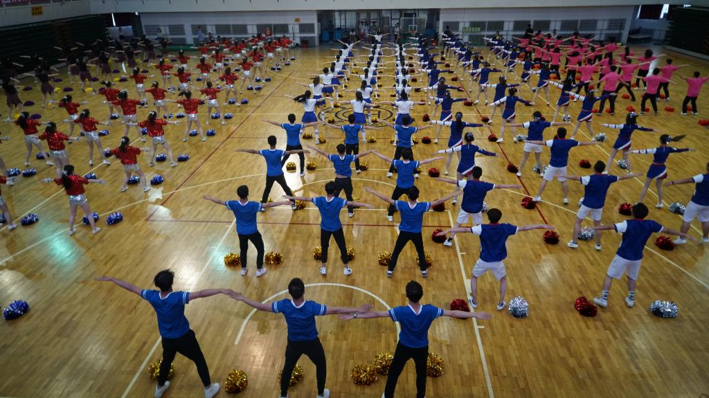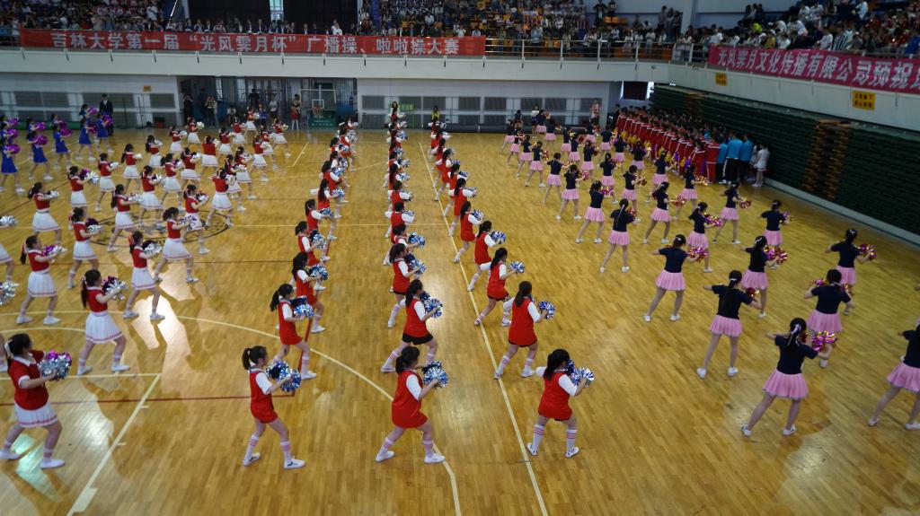 在中心校区体育馆举行了体操啦啦操比赛,号召全校师生更多地加入到全民运动的队伍中来,增加体育锻炼,强健体魄,让师生在学习和工作中拥有更加饱满的热情。