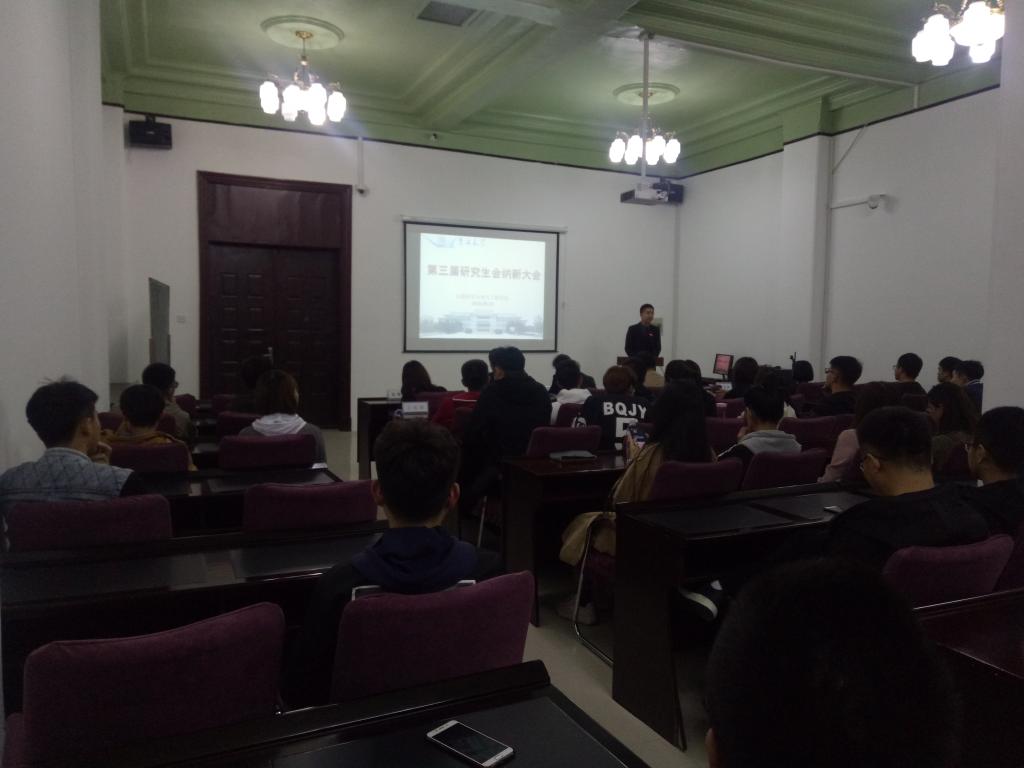 第三届研究生会纳新大会于2018年9月29日18:00在地质宫208会议室隆重召开。校研究生会副主席、学院研究生会常务副主席兼秘书长李昊阳,新能源与环境学院研究生会主席郭明亮,学院学生会主席陈亦楠及学院全体研究生会干部出席了本次会议,本次会议由学院研究生会主席周琪主持。