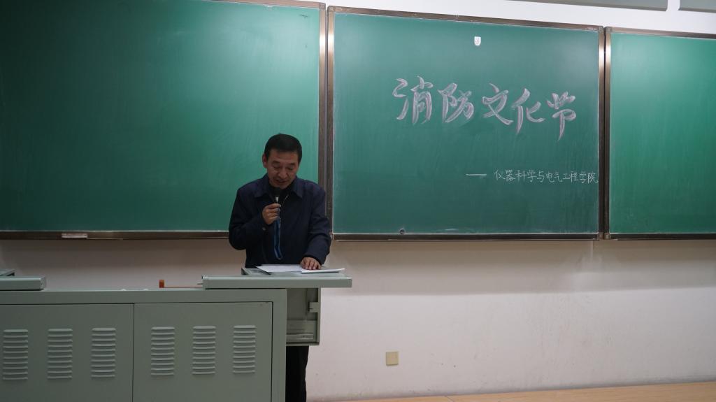 中心校区李四光楼302教室举办了第三届消防文化节活动。学院党委书记王爱民教授、副院长葛晓野老师、党委副书记兼副院长周伟老师、行政办公室主任边江老师,北区朝阳保卫办防火科科长齐占斌老师共同出席了本次活动,活动由2018级李钊洋同学主持,2018级全体同学共同参与。