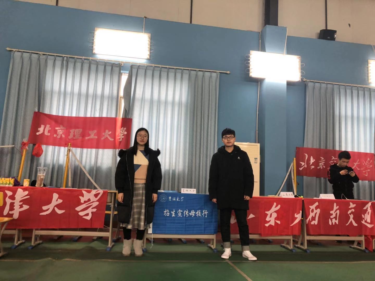 卞思宇同学和彭博同学组成的“情系母校莲一行”团队利用寒假时间前往江西省莲塘第一中学进行宣讲活动。本次活动主要分为两种形式:班内宣讲和摆摊咨询。