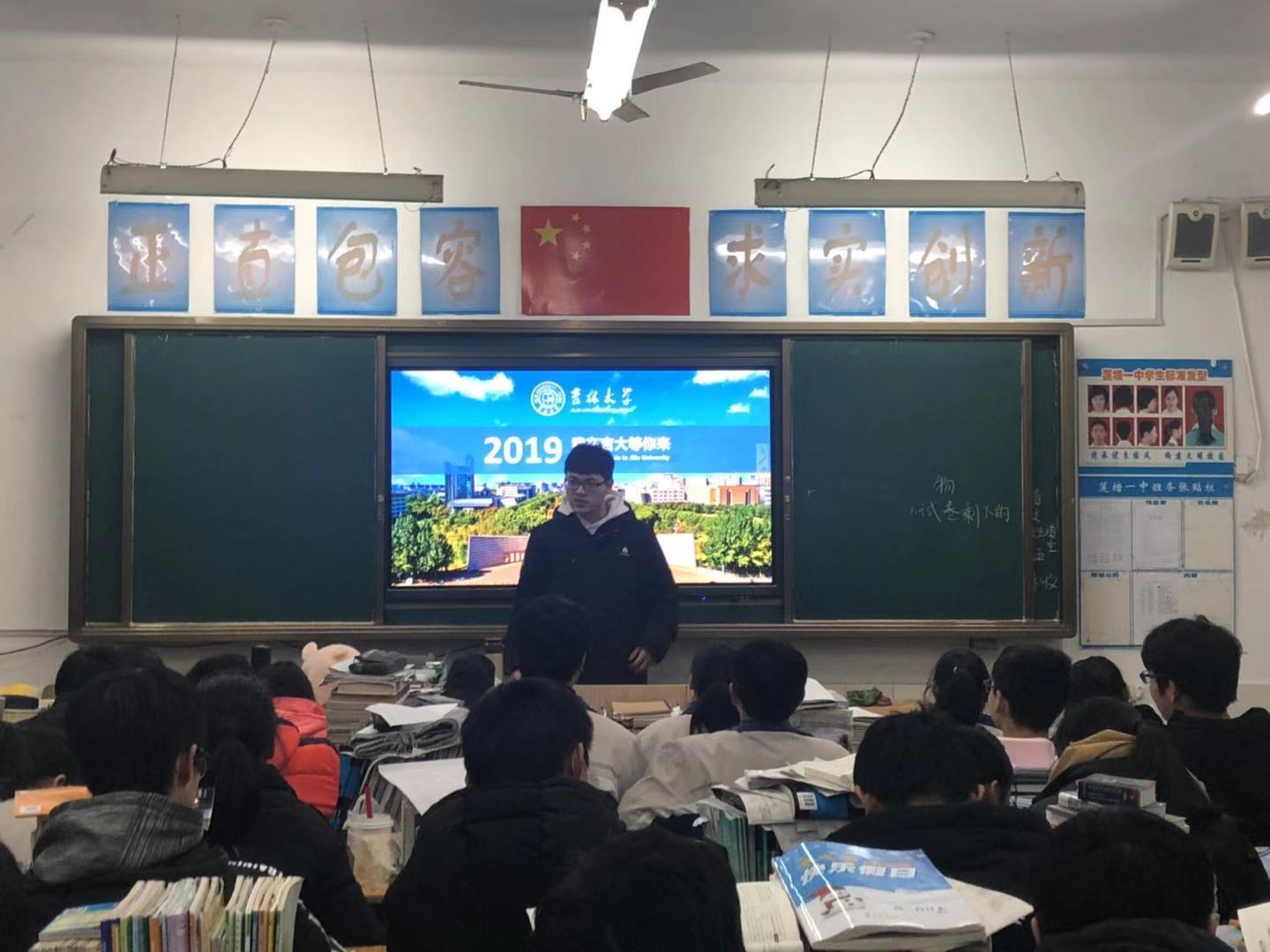 2019年1月21日下午7:00,在征得莲塘第一中学同意的情况下“情系母校莲一行”团队依次进入班级进行宣讲活动。每进入一个班级,学弟学妹们都报以热烈的掌声。团队成员首先向学弟学妹们介绍了自己的身份并表明来意,随后播放了A片网站