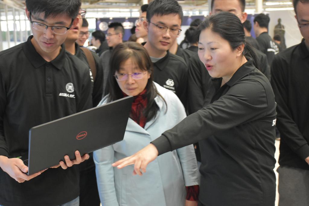 千承辉老师向张希校长汇报了本科实践教学上的成果,介绍了在5G环境下实践教学的未来规划。学生代表李昂同学带来的六足机器人获得了众多领导的关注,该机器人可实现在倾斜平面下的整体稳定,结合5G快速通信,可实现在远距离、低延迟控制,能应用于复杂地形下的搜救、探测等方面;李峥同学带来了基于ROS操作系统的无人车,该车可自主扫描地图并进行路径规划、避障等功能,这些功能在无人驾驶汽车上有着广泛应用。张希校长亲切的与老师同学们交流,并对学生展示成果表示满意与认可,同时也鼓励更多的学生能够参与进高科技、高水平的教学实践环境中去。