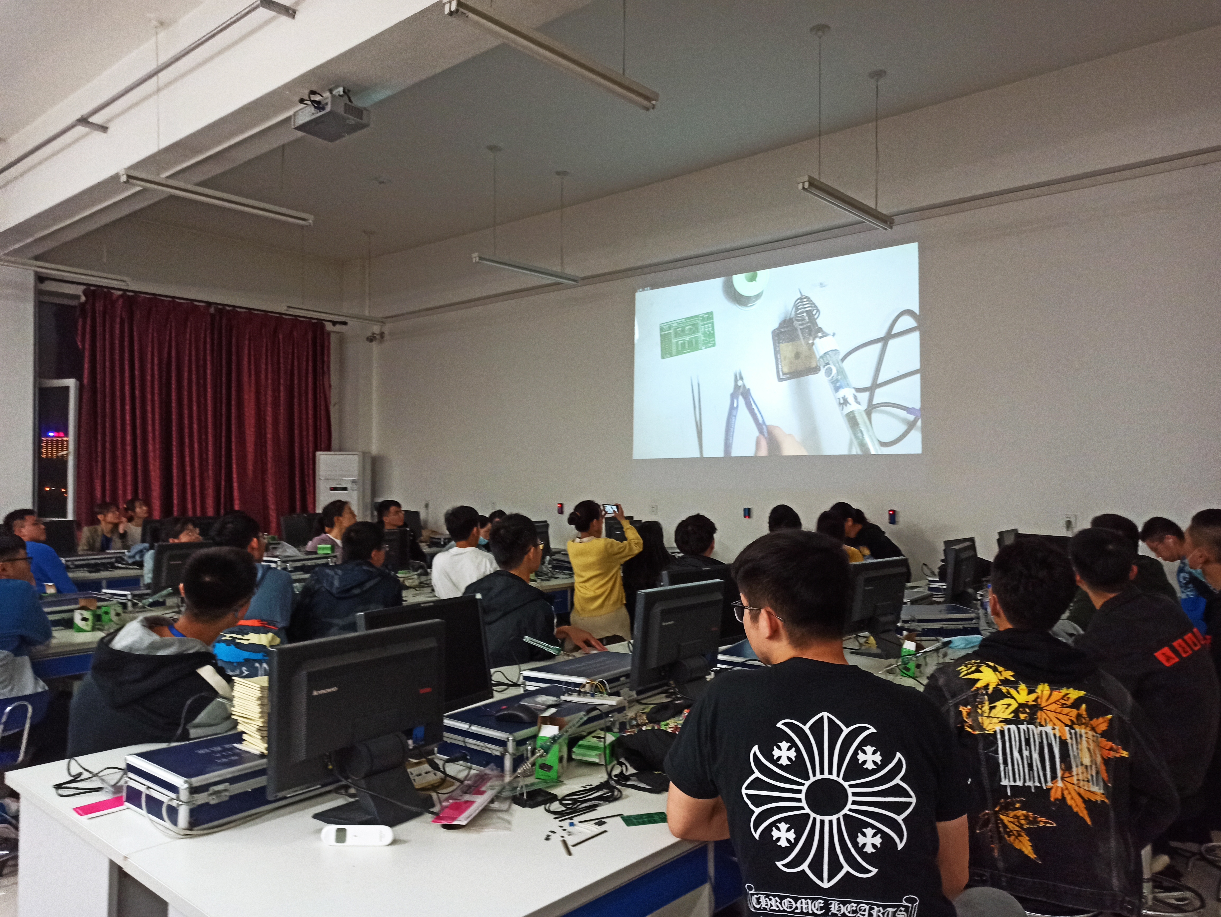 大学生科技创新协会(以下简称科协)于2020年9月19和20日晚上6:30,在李四光实验楼402教室分两期举办了PCB电路板手工焊接培训活动。本次活动主要面向第十批216+开放实验室2019级预选成员,由科协会长周原锐同学担任主讲。