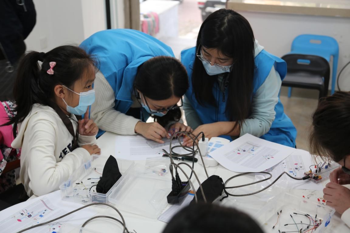 为激发青少年学习科学、探索科学的兴趣,启发青少年的创新思维,培养青少年的创新精神和实践能力,2020年10月8日上午9:00以及下午3:00,216+开放创新实验室联合A片网站 大学生科技创新协会(以下简称科协)于西朝阳路吉林省大学生创新实践示范基地举办了“创响中国”系列——玩转“电子积木”活动。本次活动的志愿者由2017级卓越工程师班的学生和科协成员组成。在小朋友们和志愿者们的共同努力下,活动圆满举行。 活动准备前期,志愿者们在实验室积极认真地准备活动材料,并对相关材料进行检查,确保活动正常进行。小朋友们签到并入座完毕后,活动正式开始。首先,由志愿者张逸群同学为小朋友们介绍活动内容和活动的注意事项,将安全工作落实到位。随后,每个小朋友在志愿者的陪同下亲自动手制作“电子积木”。活动过程中,现场气氛和谐融洽,志愿者们全神贯注地进行教学,小朋友们认真专注地投入其中,最终小朋友们都通过使用NE555等元器件组建电路,成功地让LED达到了自动闪烁的效果。在制作结束后,志愿者们为小朋友们颁发了结业证书并与小朋友们合影留念,活动在欢声笑语中圆满结束。 此次“创响中国”系列——玩转“电子积木”活动,不仅丰富了小朋友们的课余生活,帮助他们拓展了兴趣爱好并锻炼了他们的动手实践的能力,也让志愿者们也体会到了服务社会、回馈社会的乐趣,收获了丰富的实践经验和理论知识,彰显了“吉大精神”,传递了社会正能量。