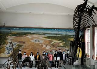 博物馆分为科普厅和恐龙厅,其中科普厅设有奇石展区,宝玉石展区,古生物展区及地学科普知识展区。恐龙厅展有在东北地区挖掘出土的巨型恐龙骨架化石及珍贵的恐龙蛋、恐龙脚印化石等。党员们边参观、边记录、边学习,了解相关的地质历史。