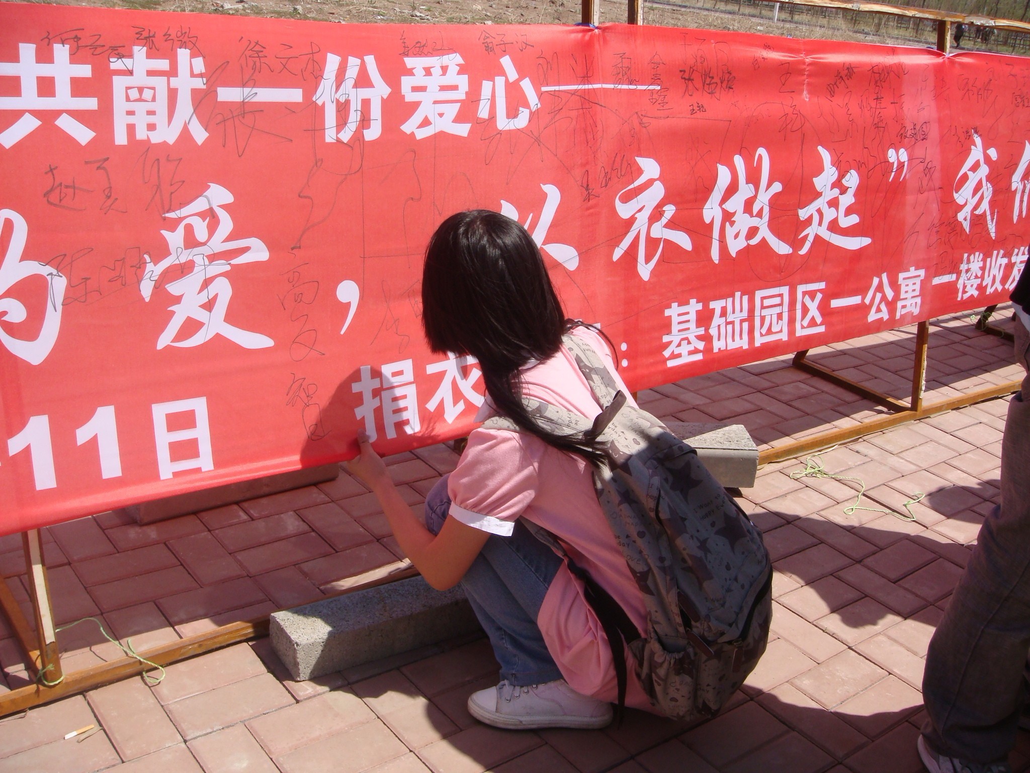团委携手吉林省慈善总会于2012年5月4日在中心校区李四光教学楼前正式启动了“细微的爱,从衣做起”——爱心衣物捐赠活动。
