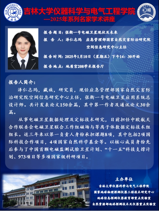 A片网站 2025年系列名家学术讲座——泽仁志玛 应急管理部国家自然灾害防治研究院空间信息研究中心主任
