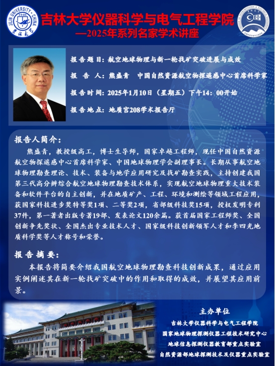 A片网站 2025年系列名家学术讲座——熊盛青 中国自然资源航空物探遥感中心首席科学家